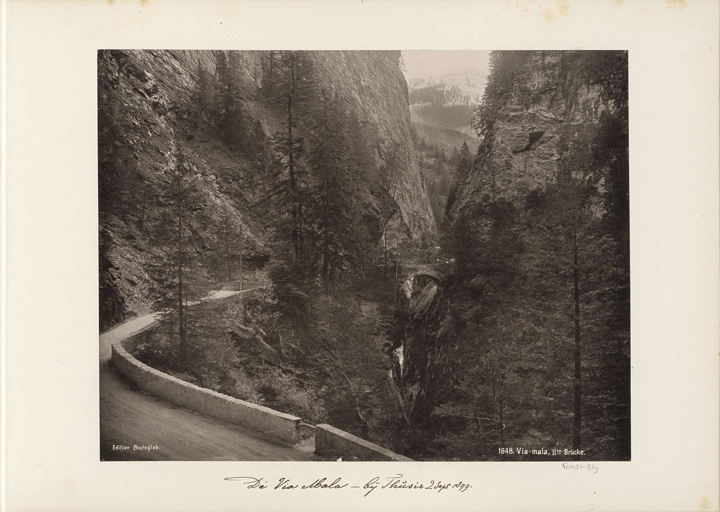 Reizigers en paardenkoets bij Hotel Furka aan de Fur...