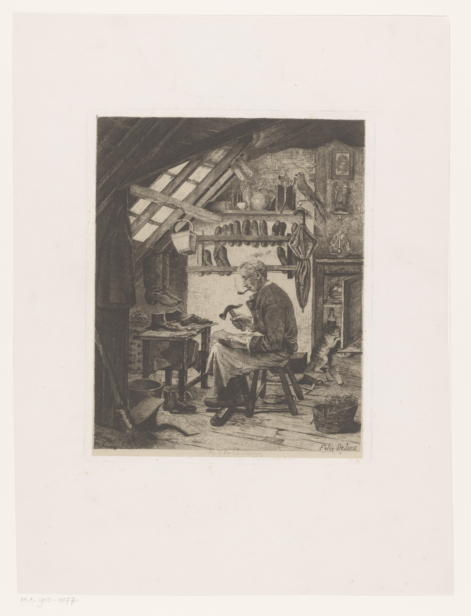 Schoenmaker in zijn werkplaats