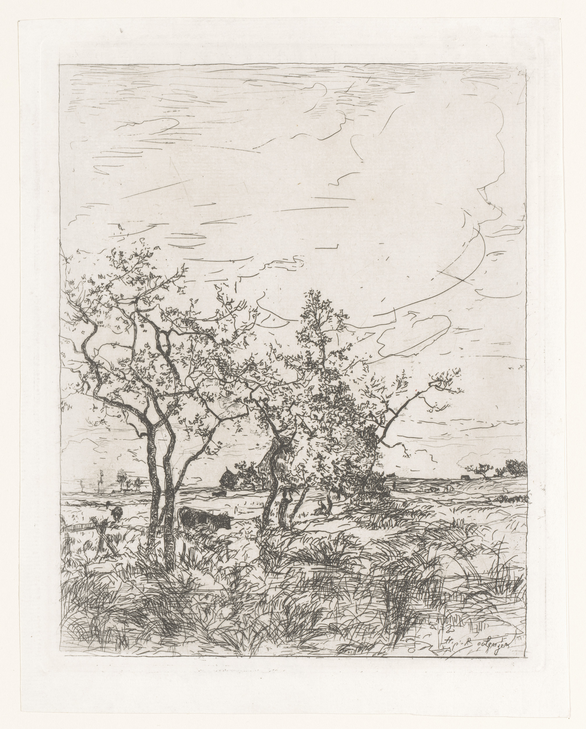 Landschap met bomen en hei