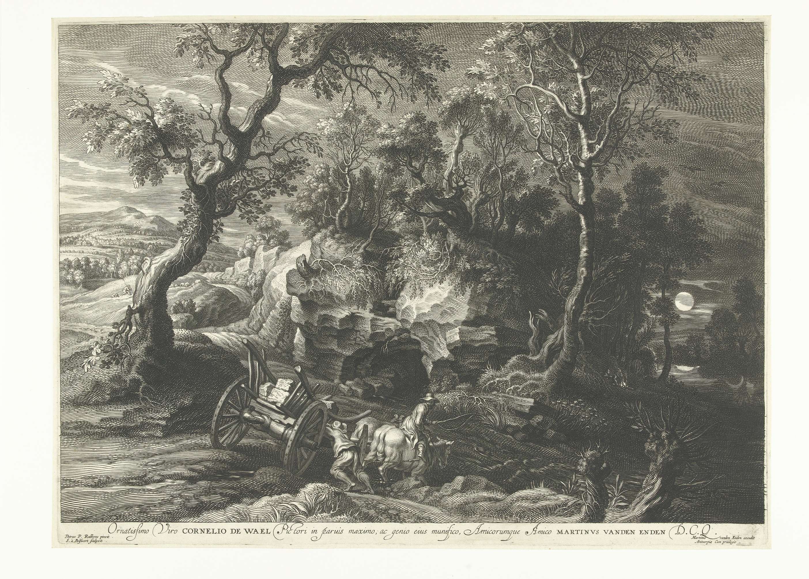 Landschap met vastgelopen wagen