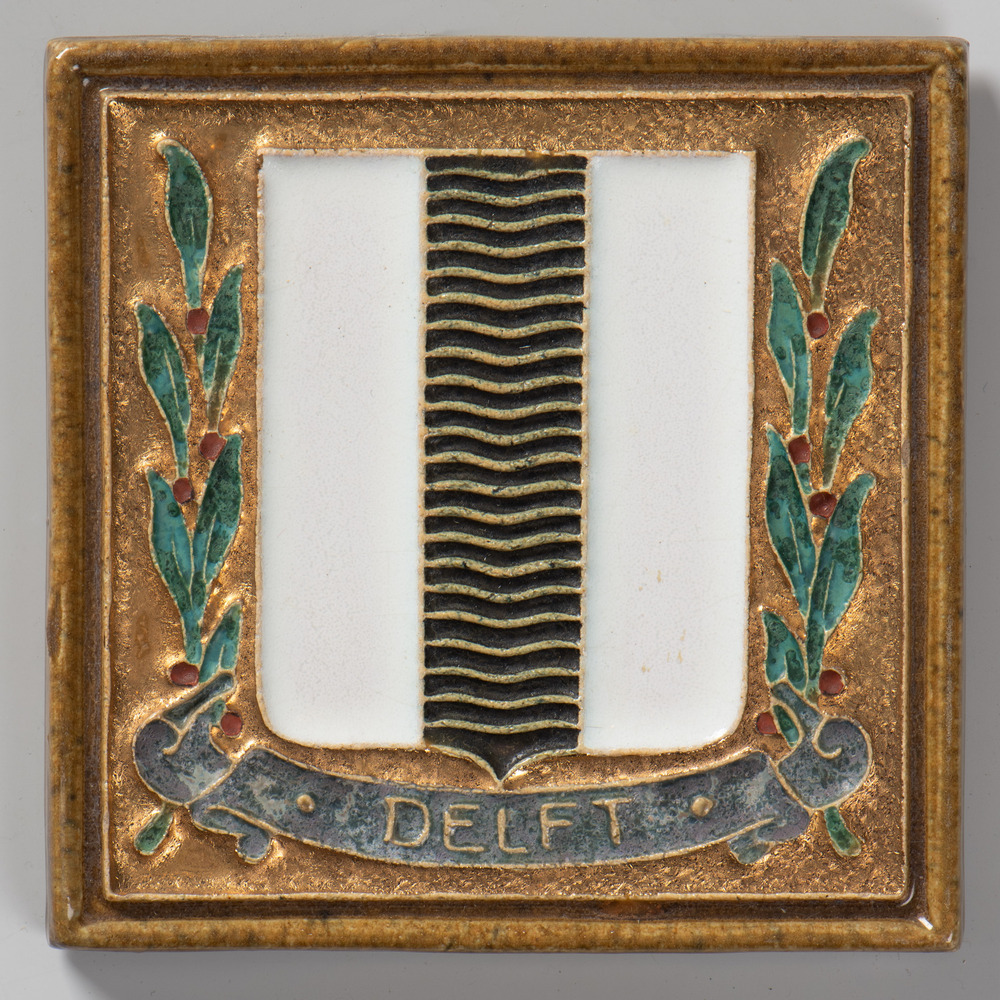 Tegel in cloisonné-techniek, voorstellende wapen Gel...