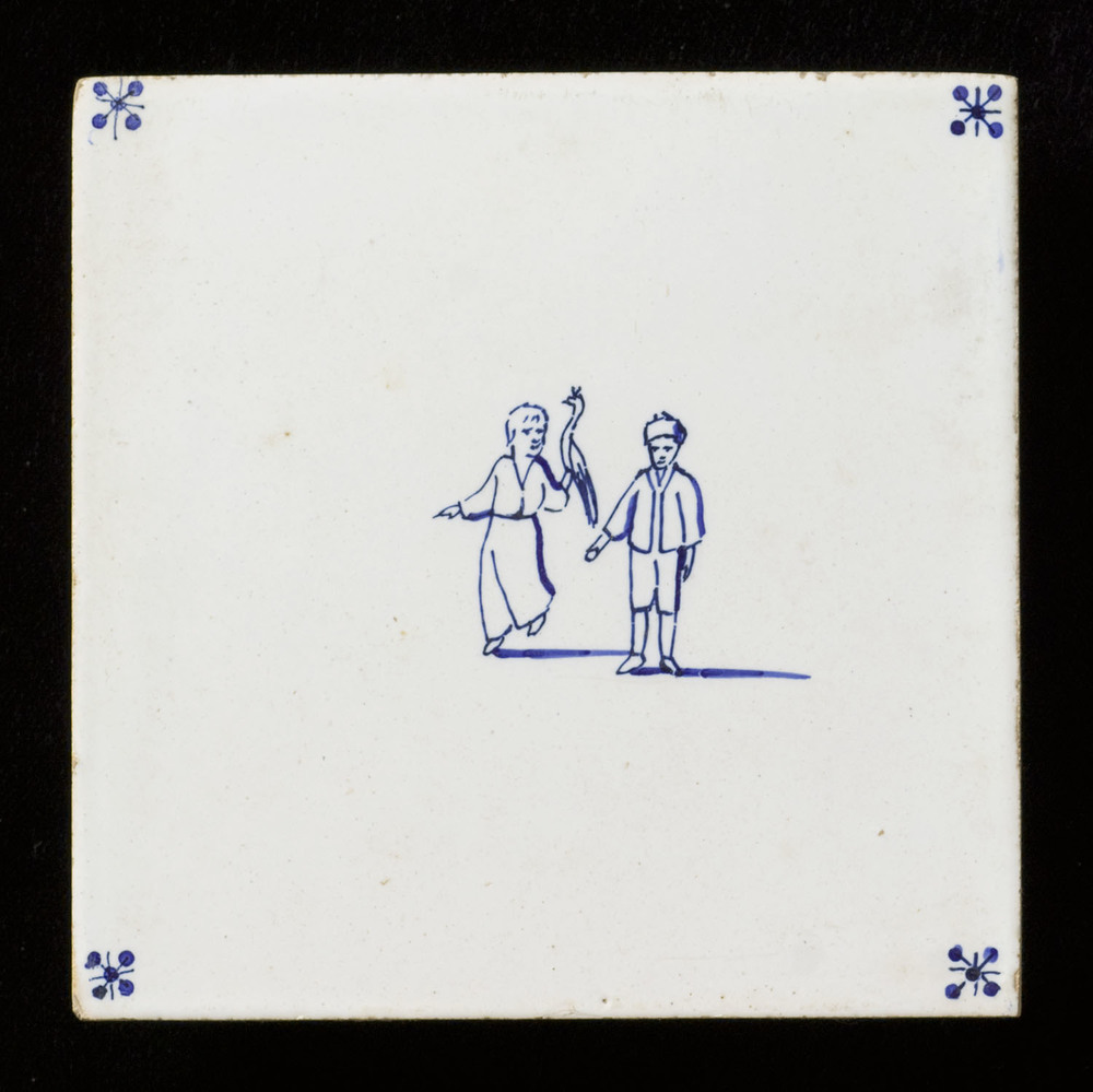 Tegel in tinglazuur, met voorstelling: kinderspel en...