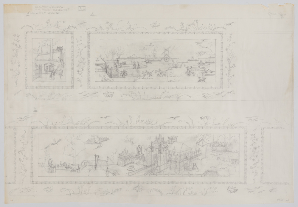 Chinoiserie voorstelling op de lambrisering van het ...