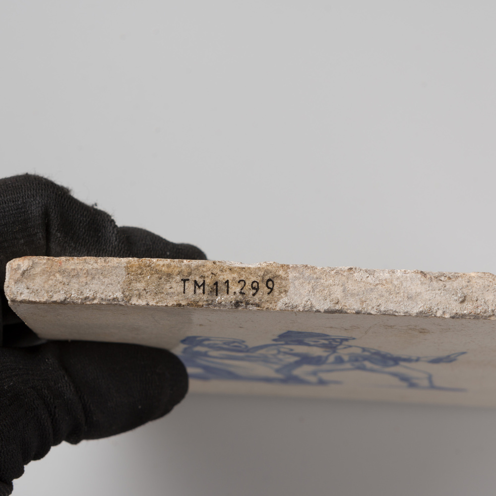 tegel van aardewerk in onderglazuur, voorstellende: ...