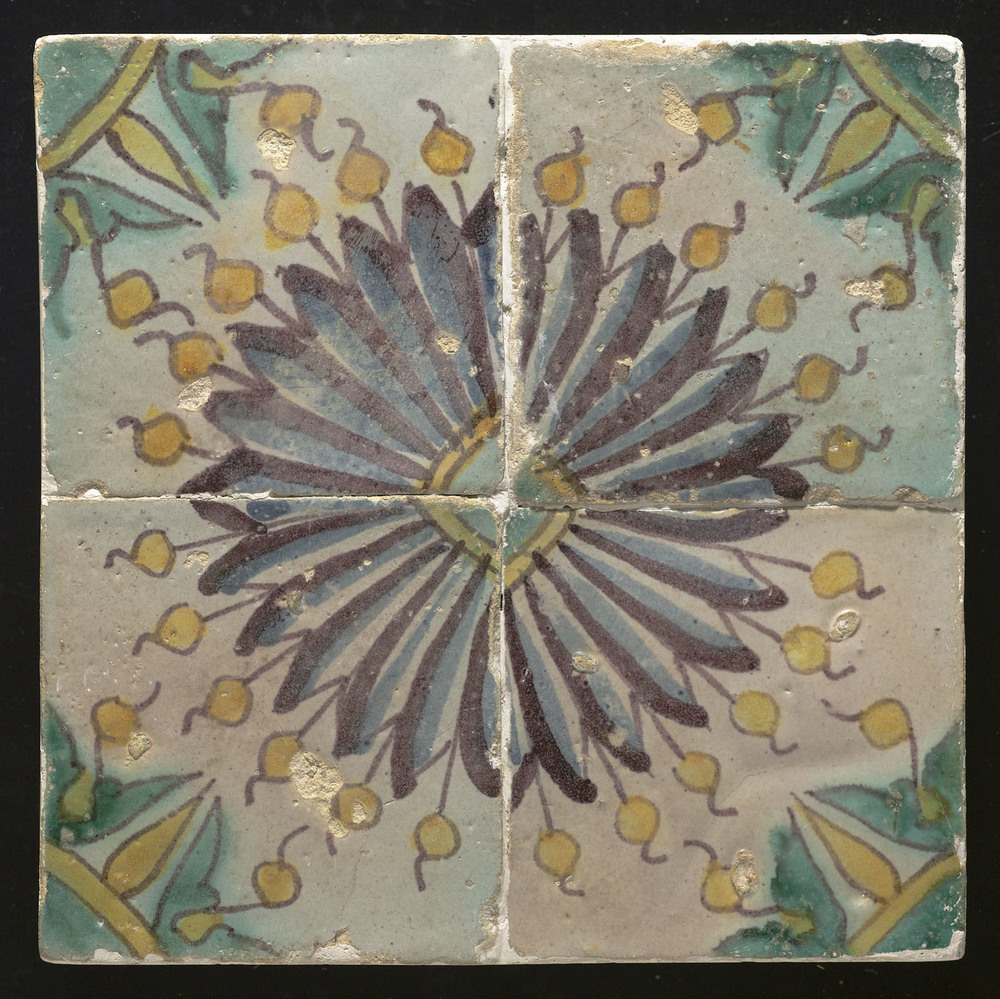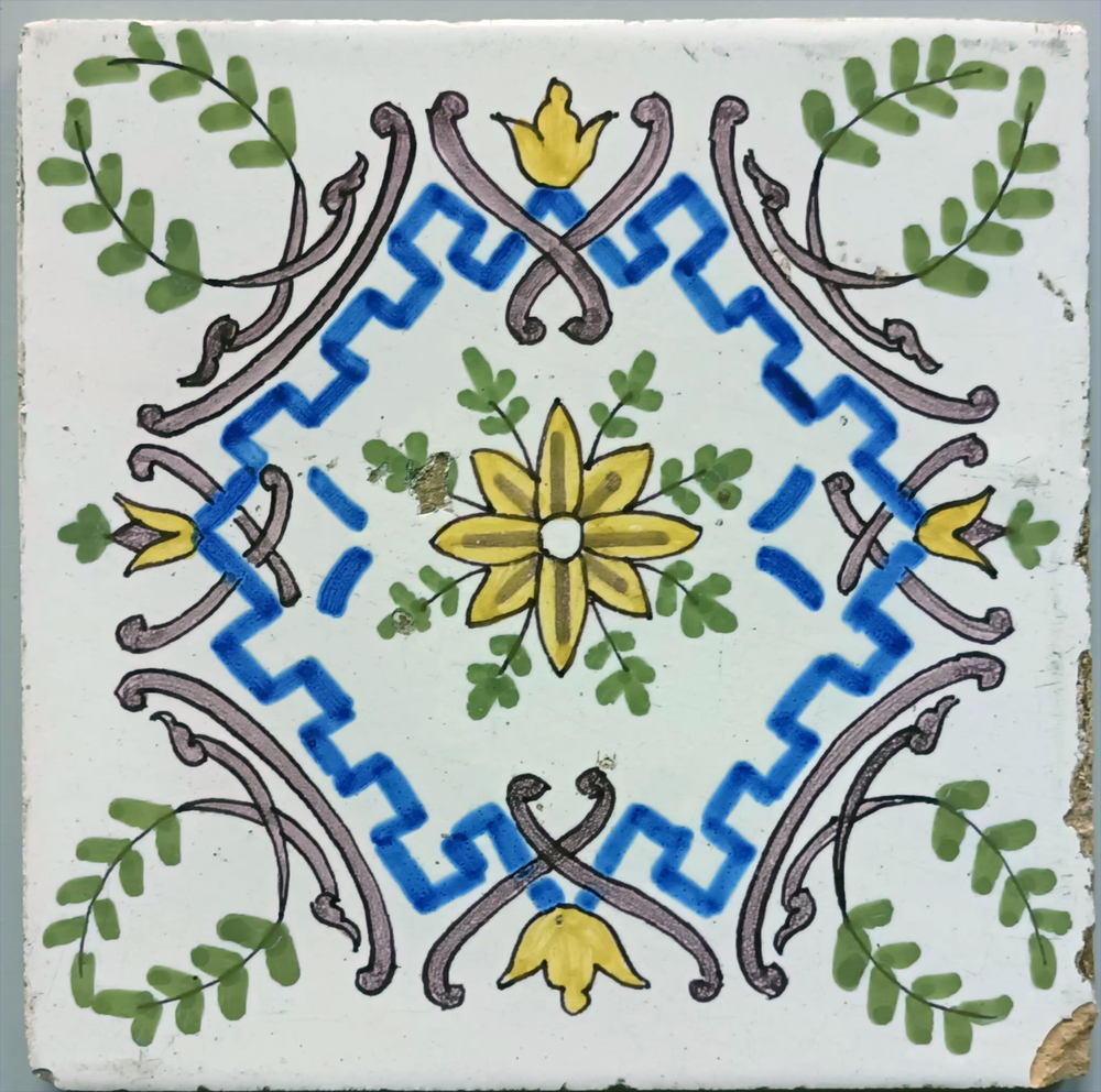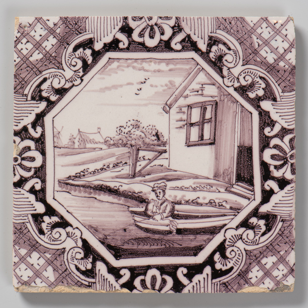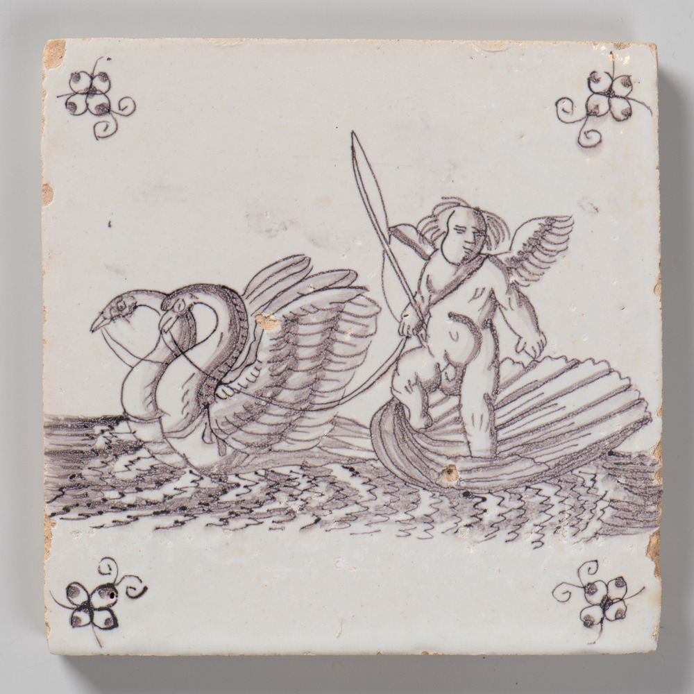 randtegel van keramiek met tinglazuur, voorstellende...