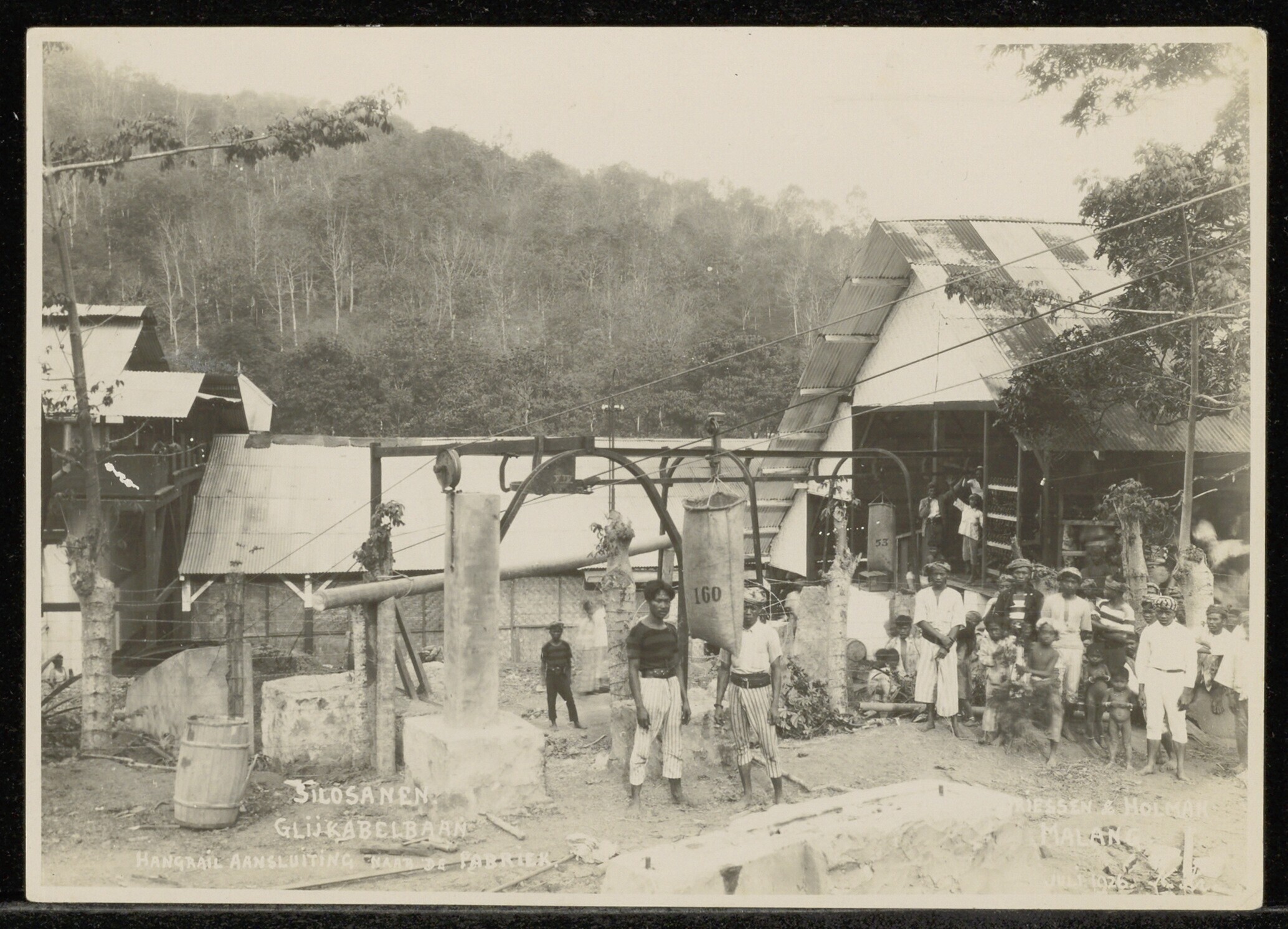 Mannen en kinderen bij een suikerfabriek