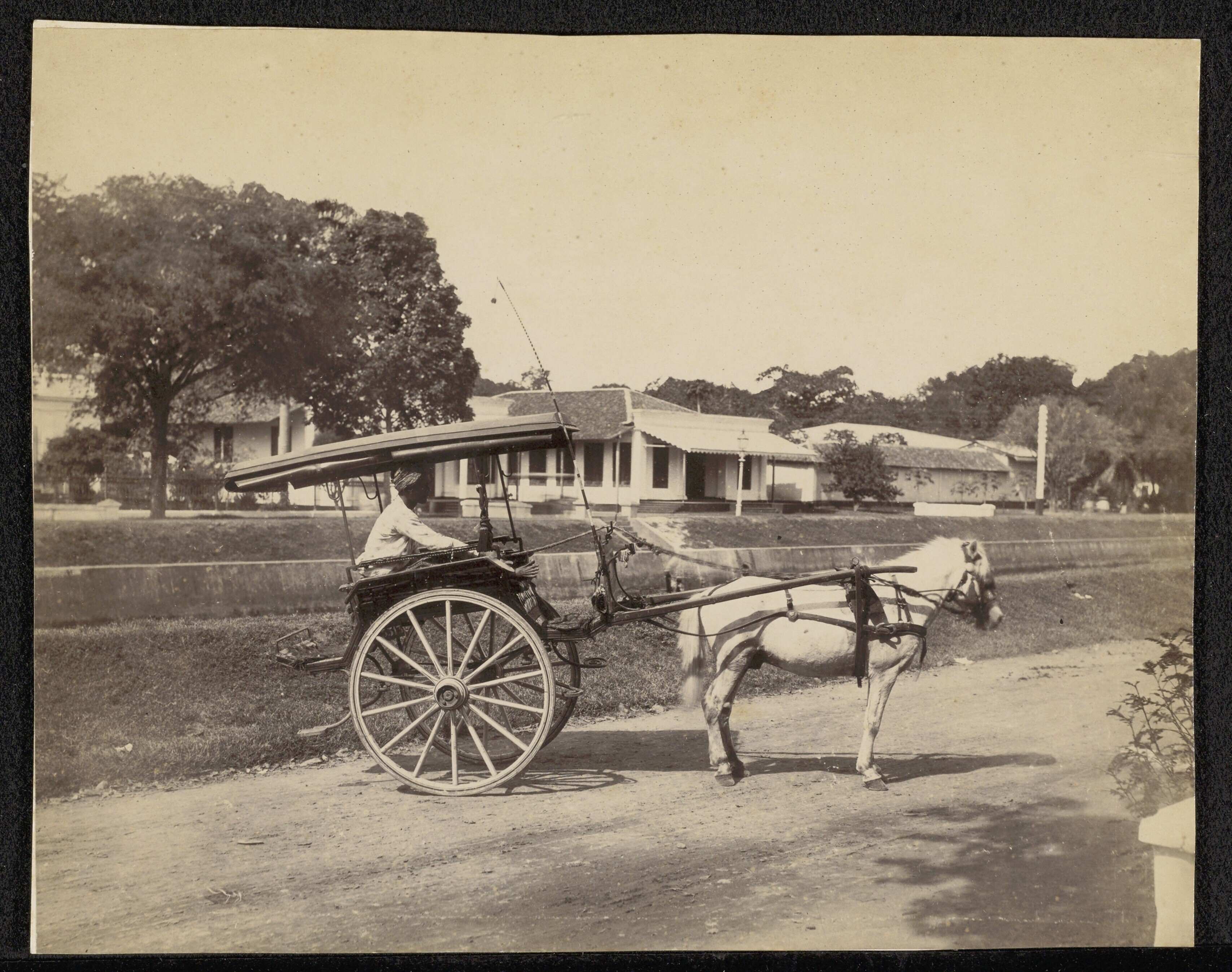 Een huurrijtuig langs de Molenvliet, Batavia