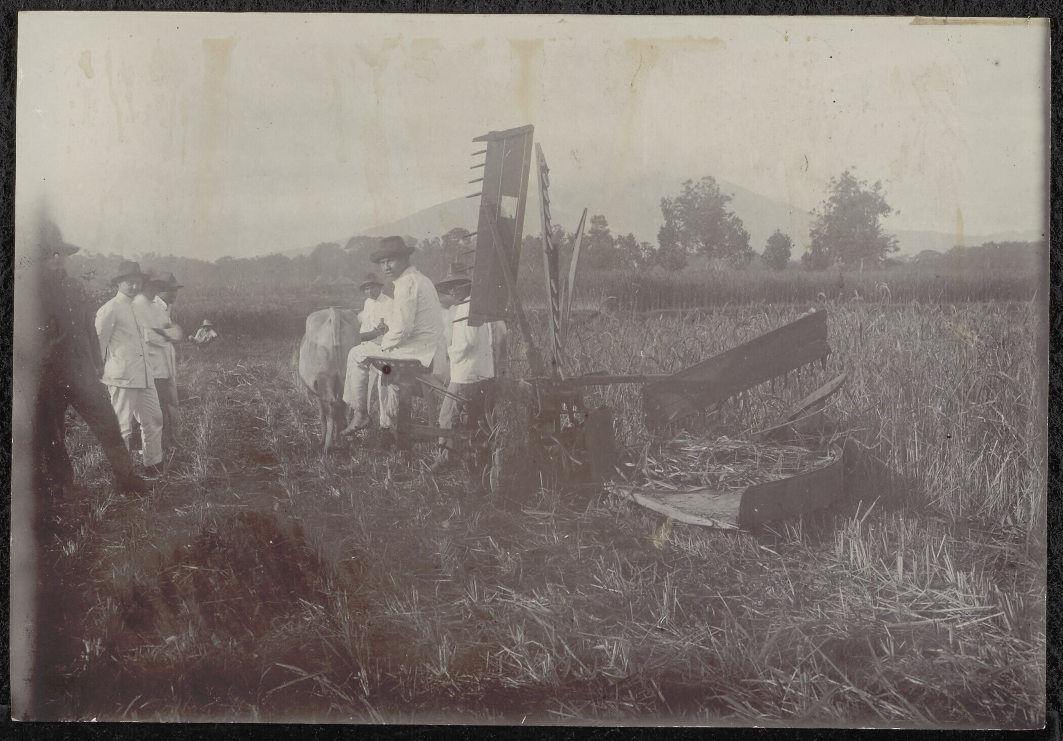 Groepsportret met G.F.J. Bley en employees op de pla...