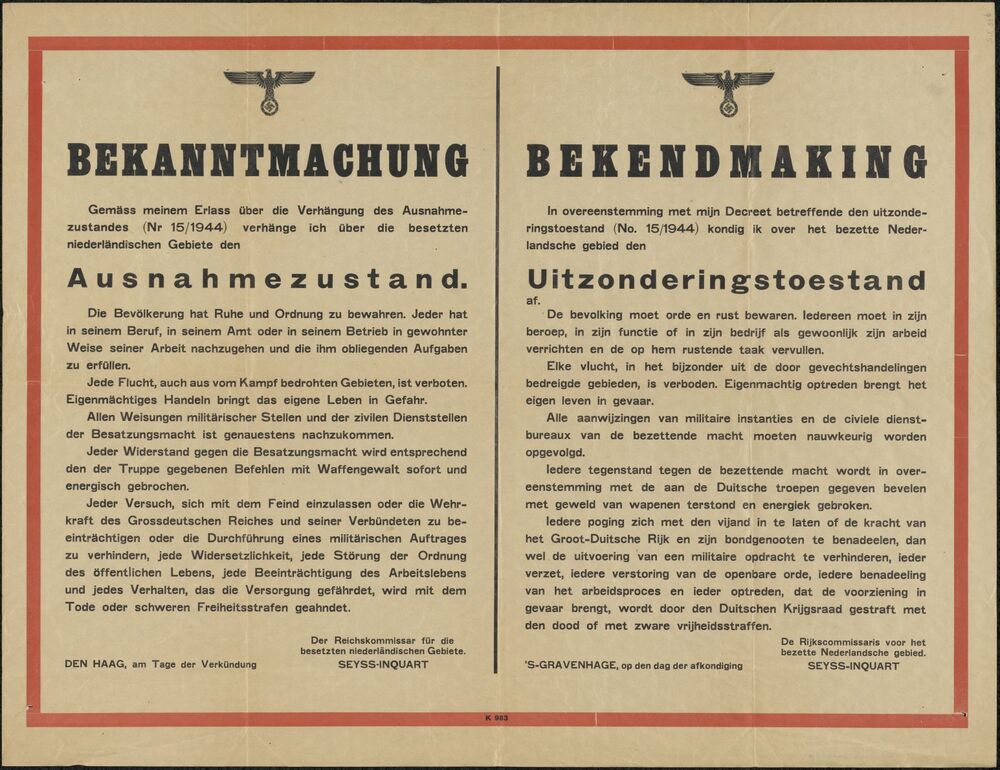 Bekendmaking Uitzonderingstoestand door Seyys-Inquar...