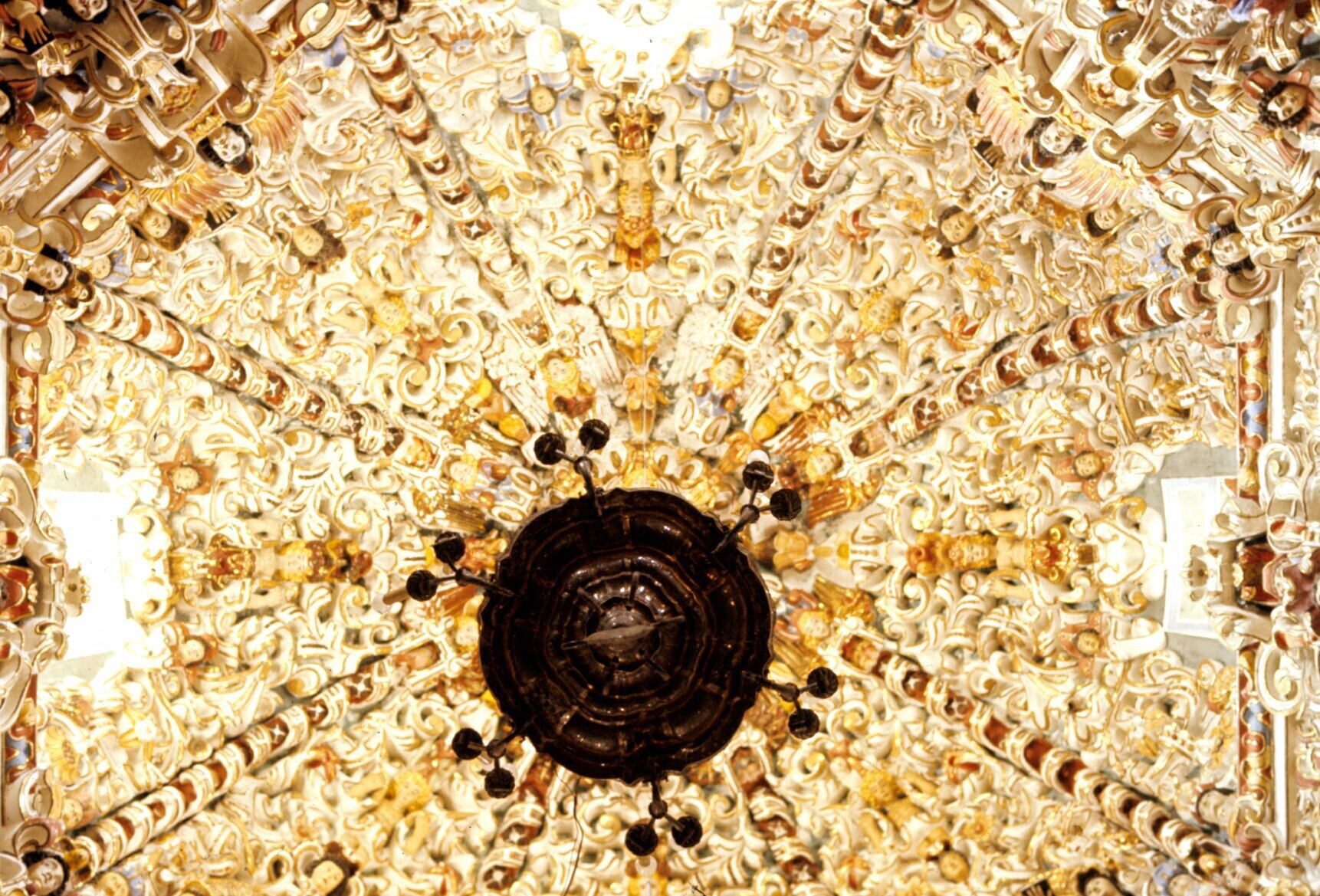 rijkversierd gewelf van koepel kerk Santo Domingo