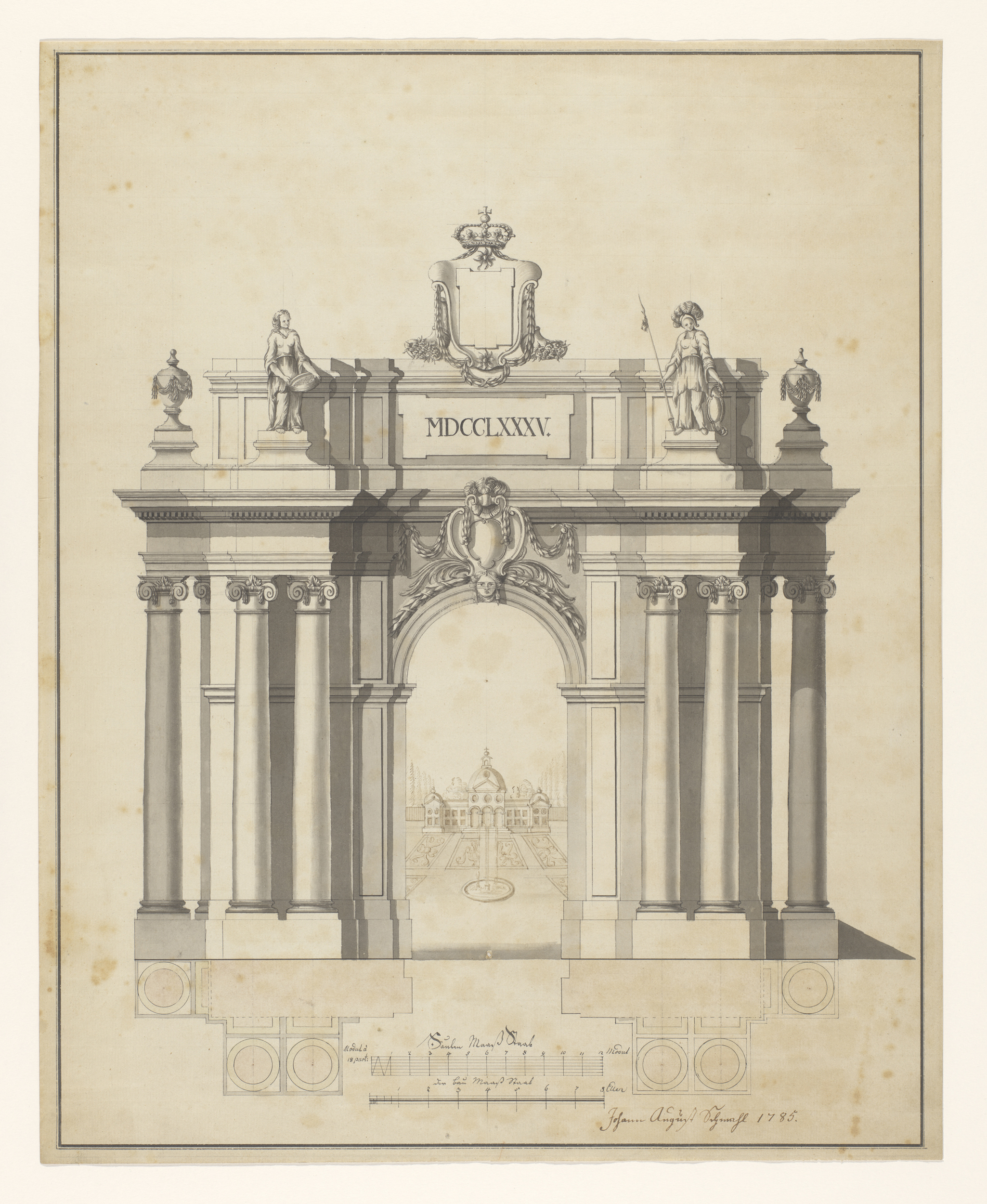 Ontwerp voor een poort voor een tuin met een paviljo...