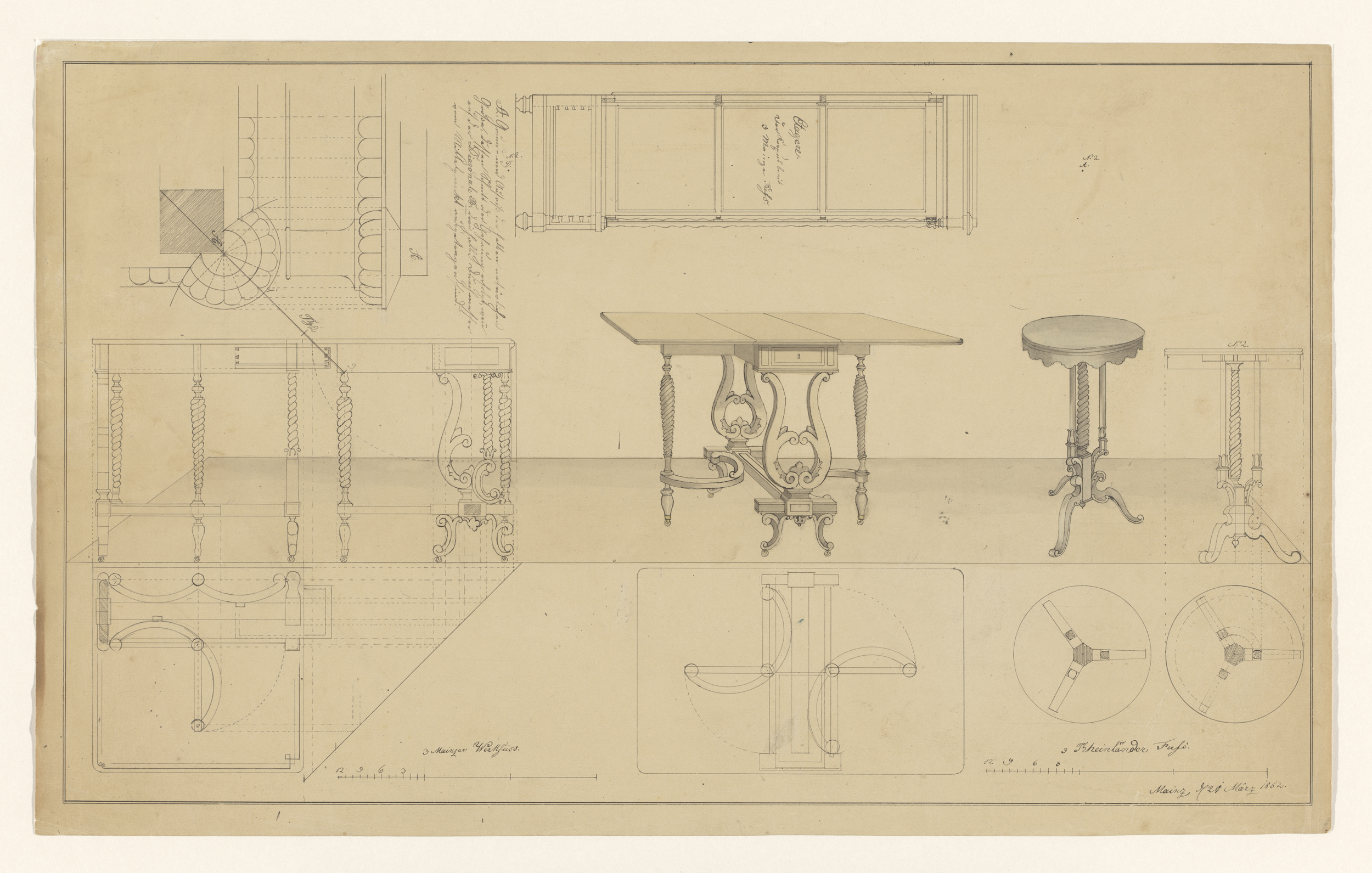 Ontwerp voor een klaptafel en een canapé, beide met ...