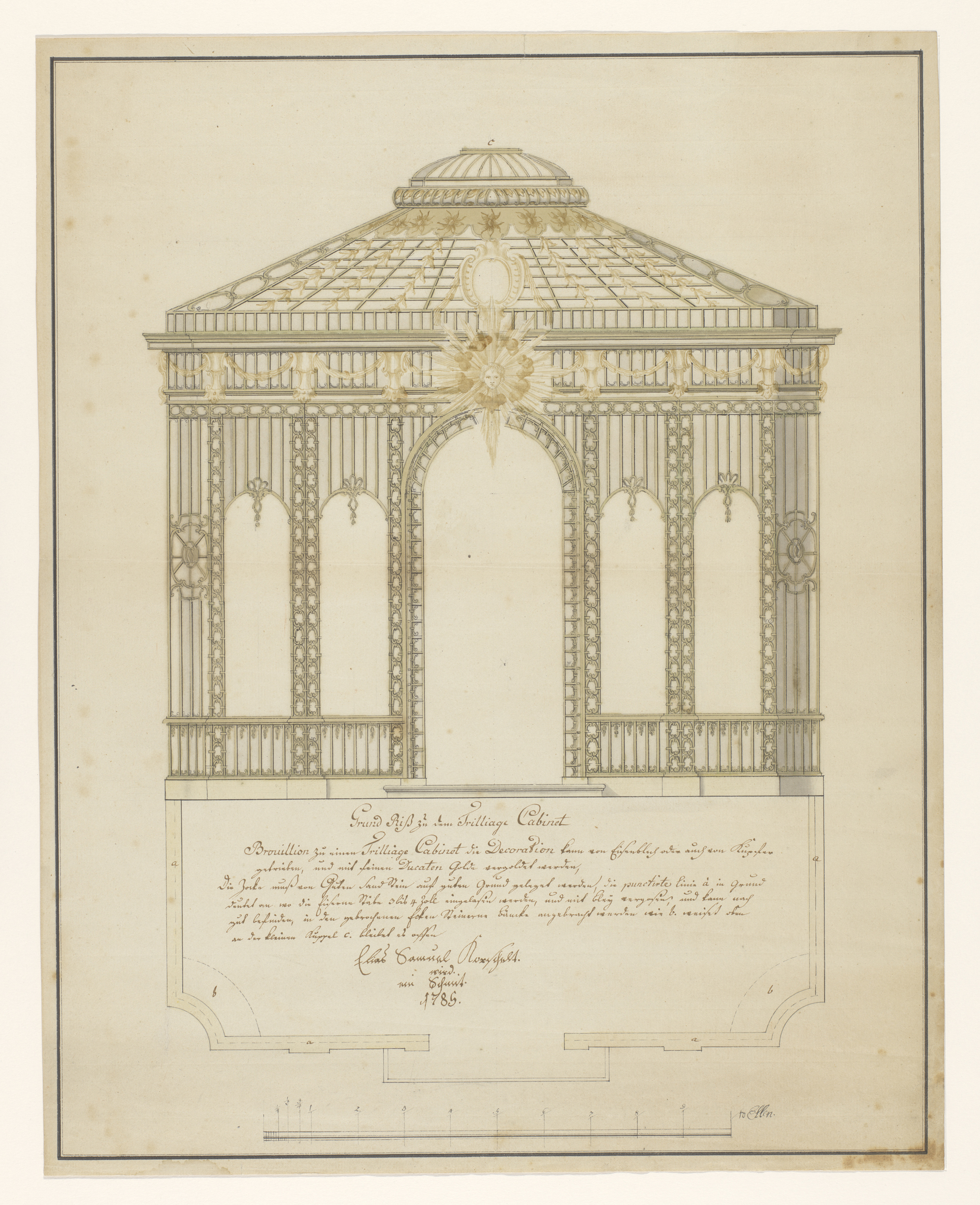 Ontwerp voor een tuinpaviljoen van gedeeltelijk verg...