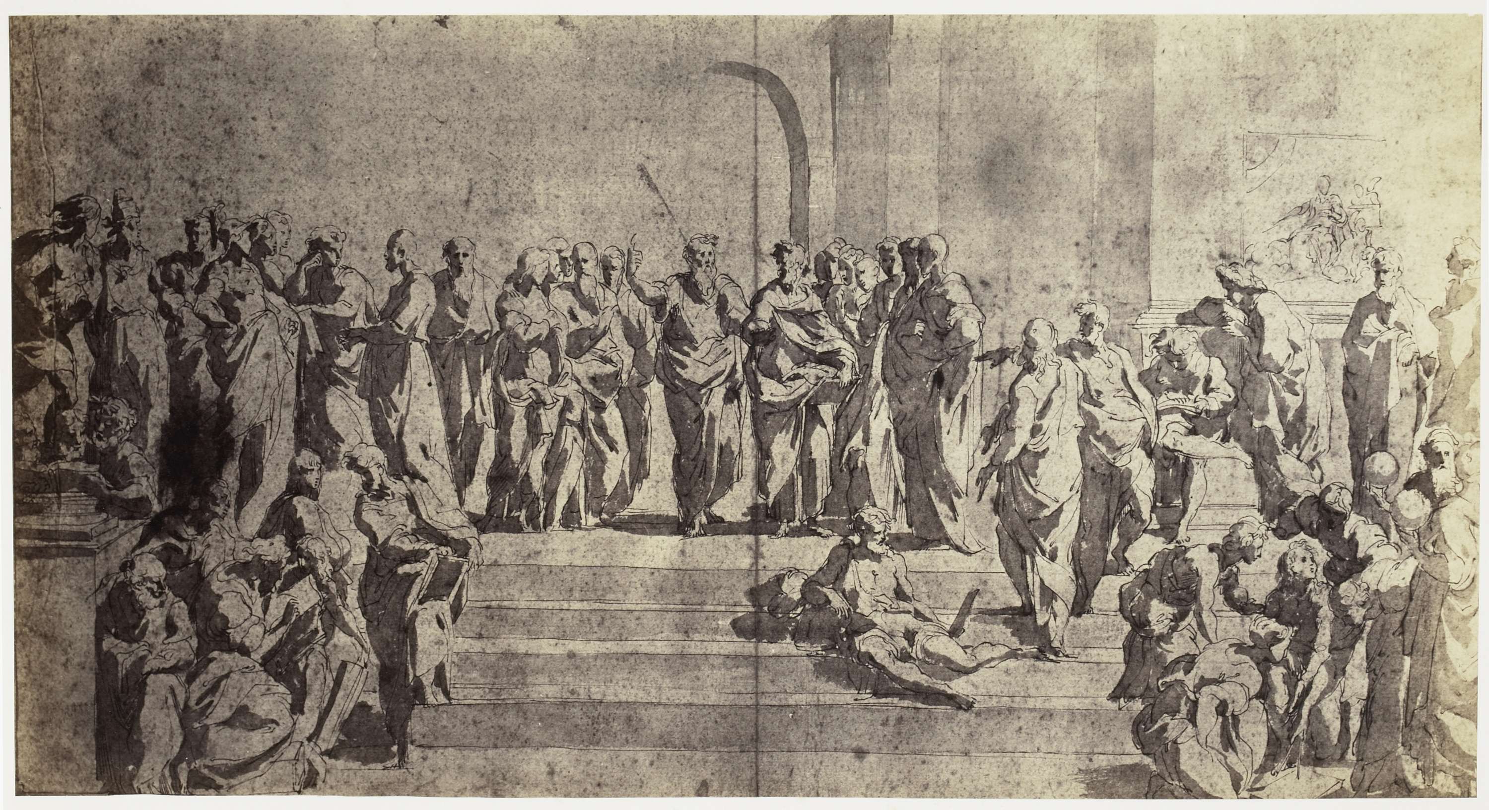 Fotoreproductie van een tekening van Rafaël, zes wijzen