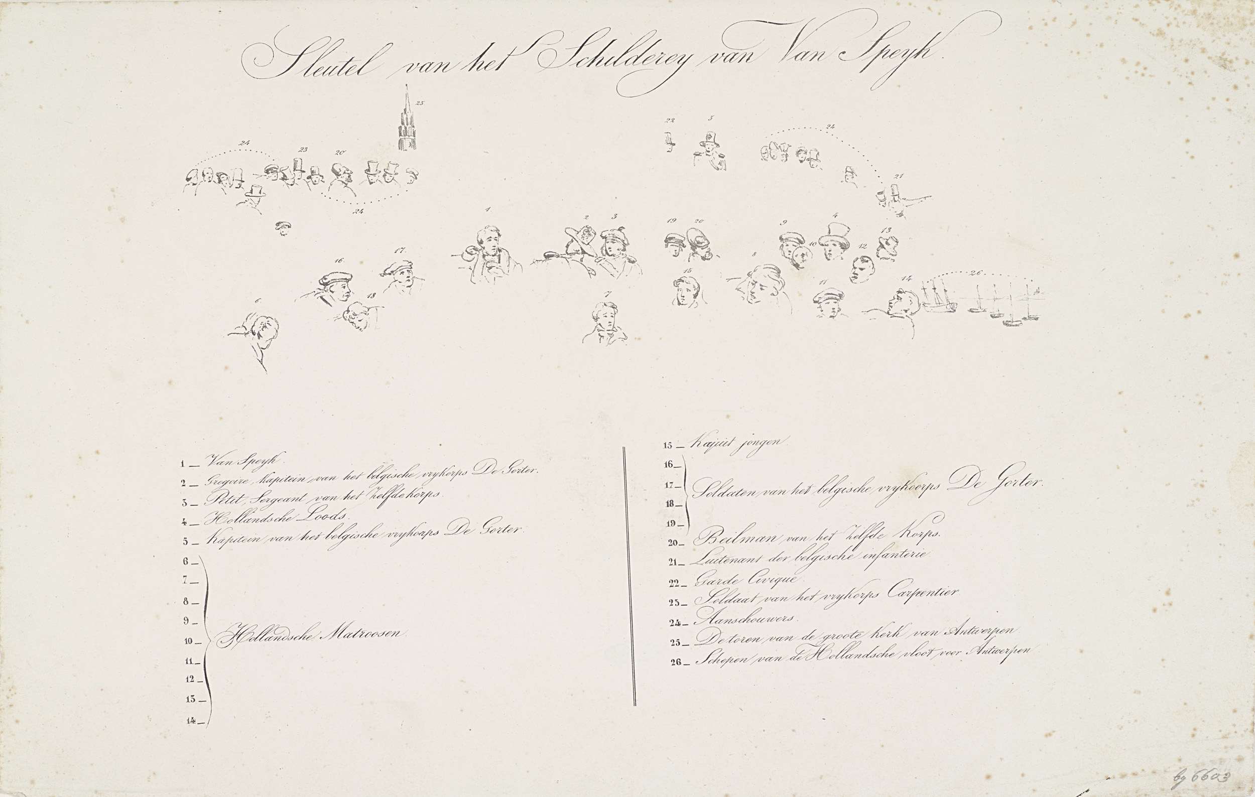 Sleutel bij de prent van de Slag bij Waterloo, 1815