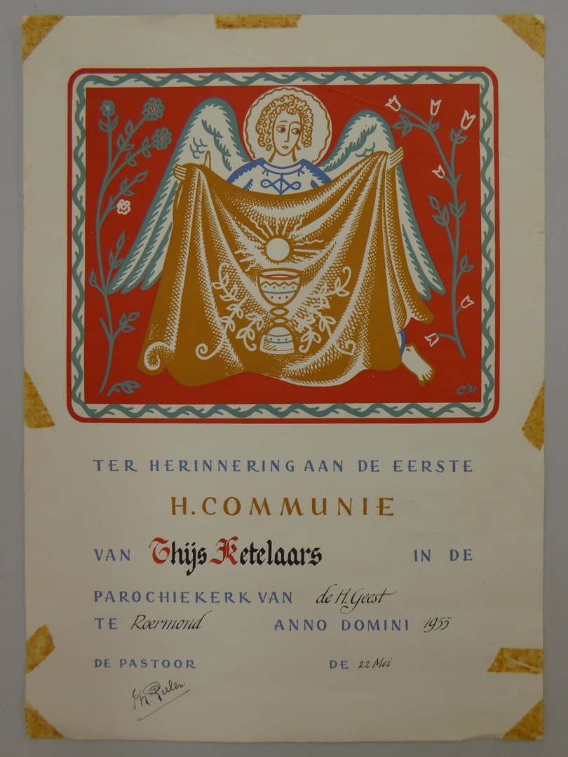 Prent ter herinnering aan de Eerste H. Communie van ...