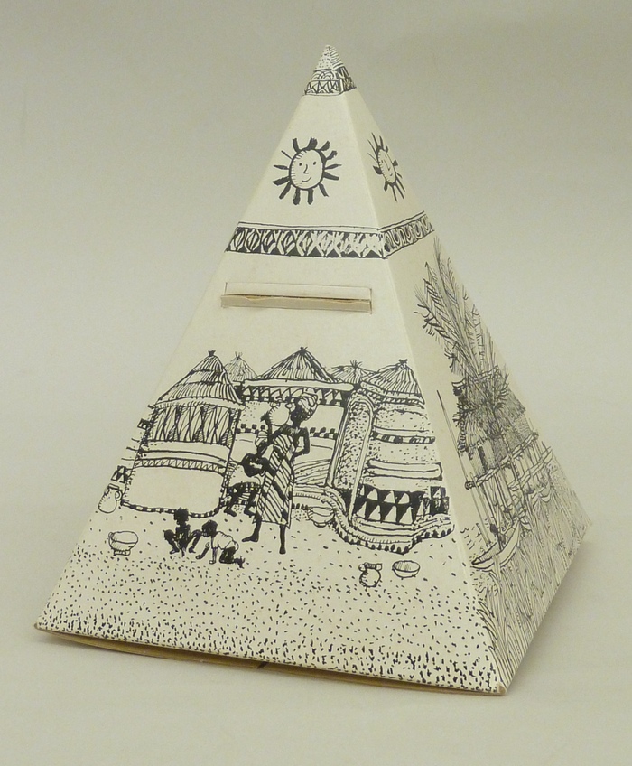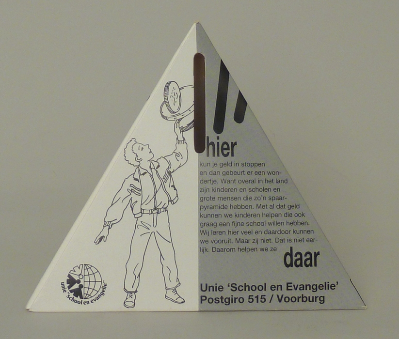 Pyramidevormige spaarpot van de Unie 'School en Evan...