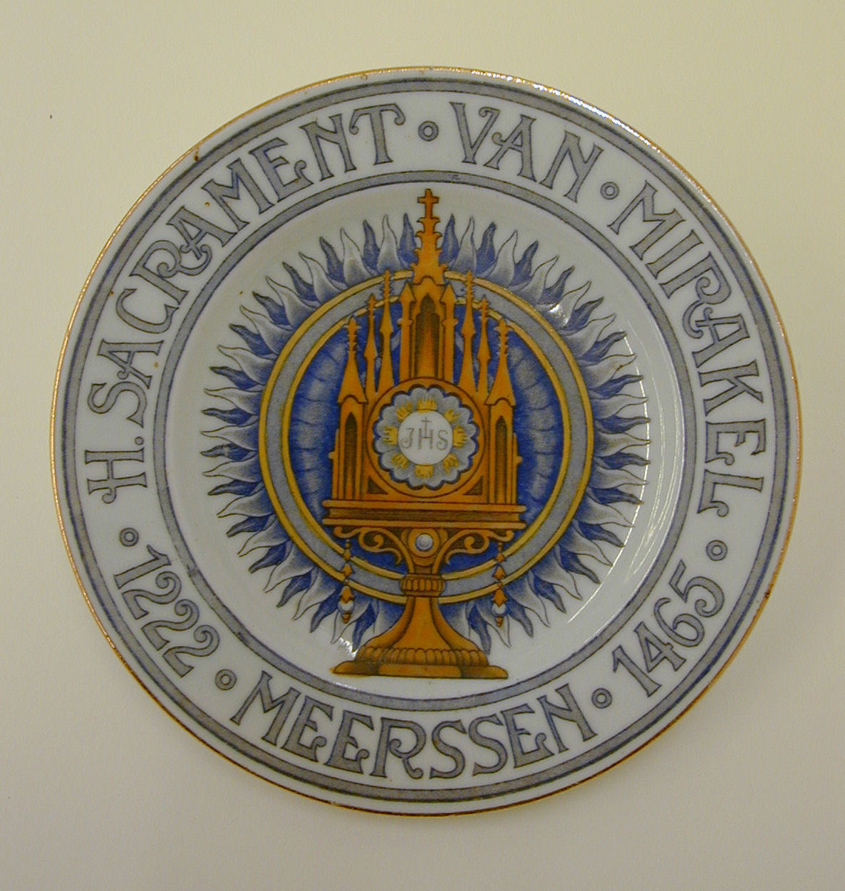 Ontbijtbord met kelk, hostie, lam en canonborden op ...