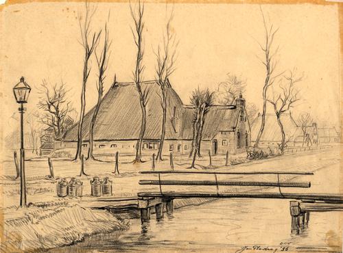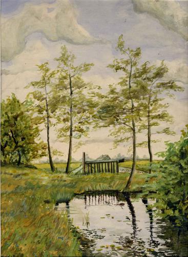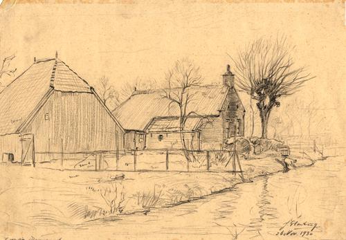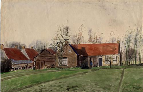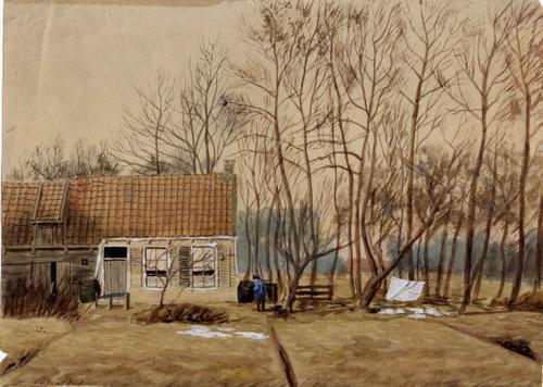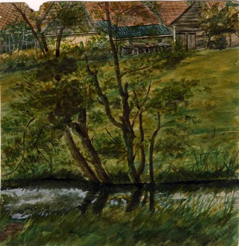 Aquarel van een boerderijtje aan de Houtlaan de Drac...