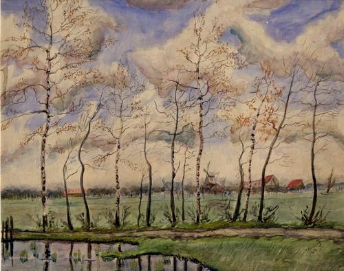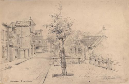 Aquarel van de Houtlaan vanaf de Keuningsbuurt
