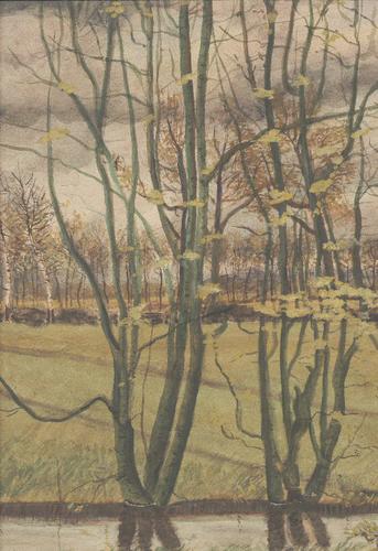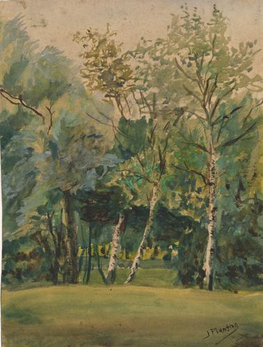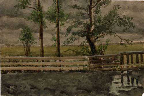 Aquarel met gezicht op de Houtlaan vanaf de Keunings...
