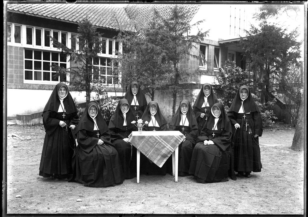 Groep nonnen in de tuin van het nutsgebouw te Zaltbo...