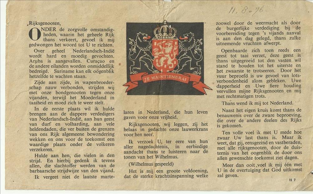 Brief van de Binnenlandsche Strijdkrachten Comp. "Ma...