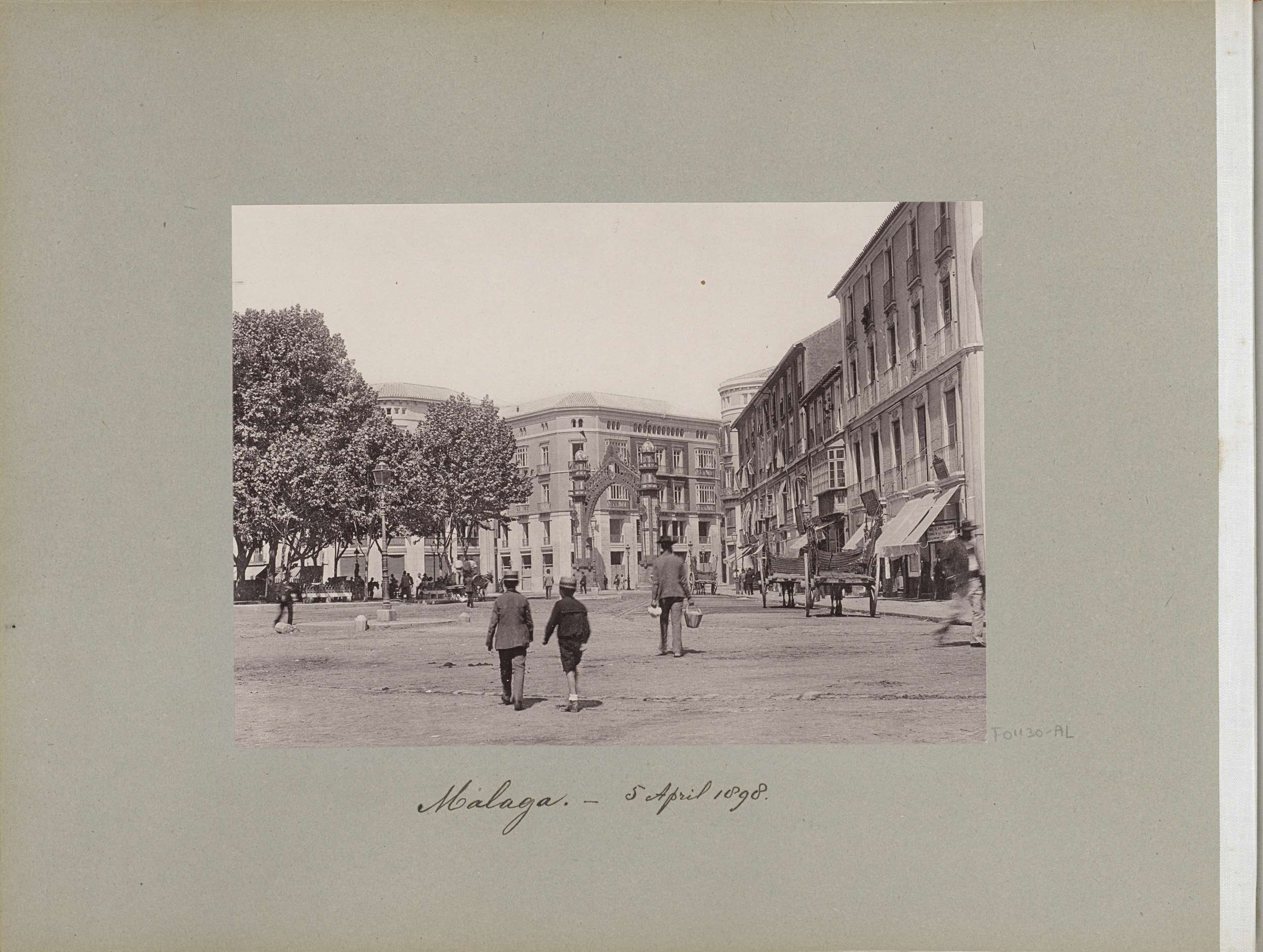 Straatgezicht in Malaga met op de achtergrond een poort