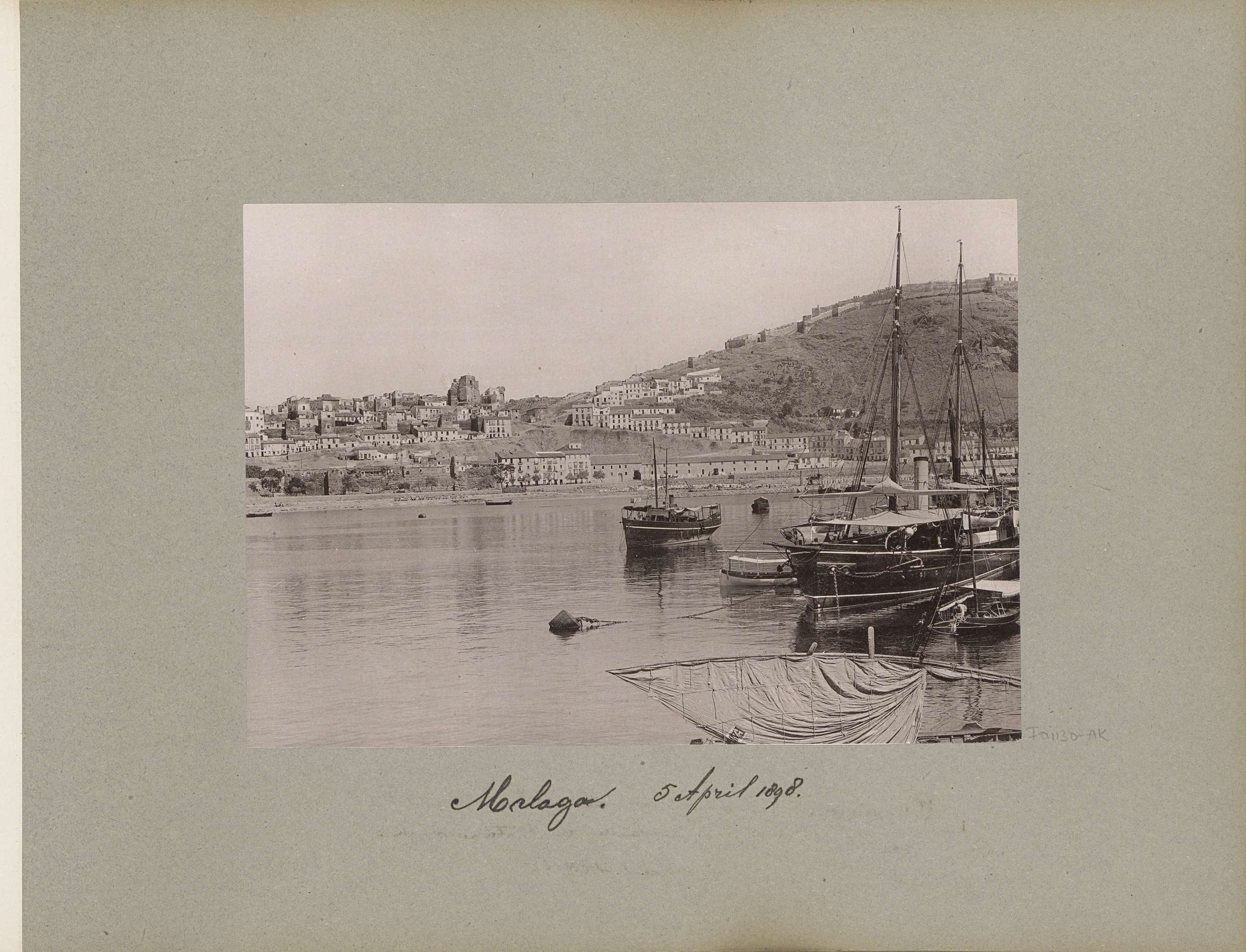 Gezicht op de haven van Malaga met rechts op de heuv...