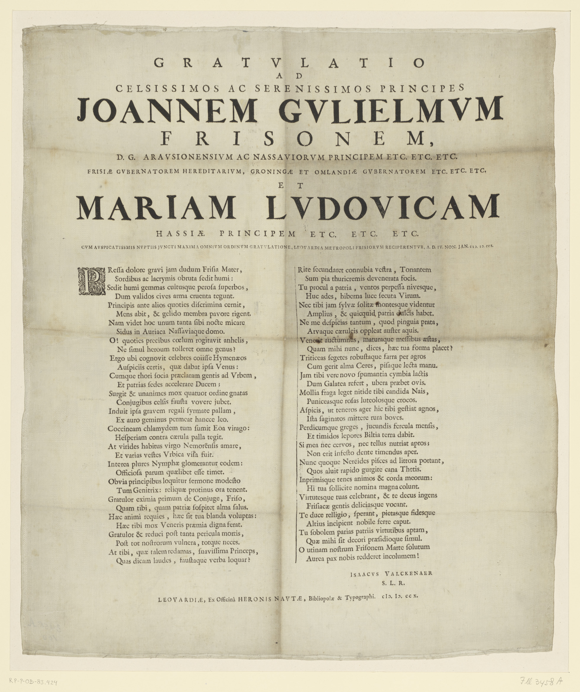 Gelukswens aan Johan Willem Friso en Maria Louise bi...
