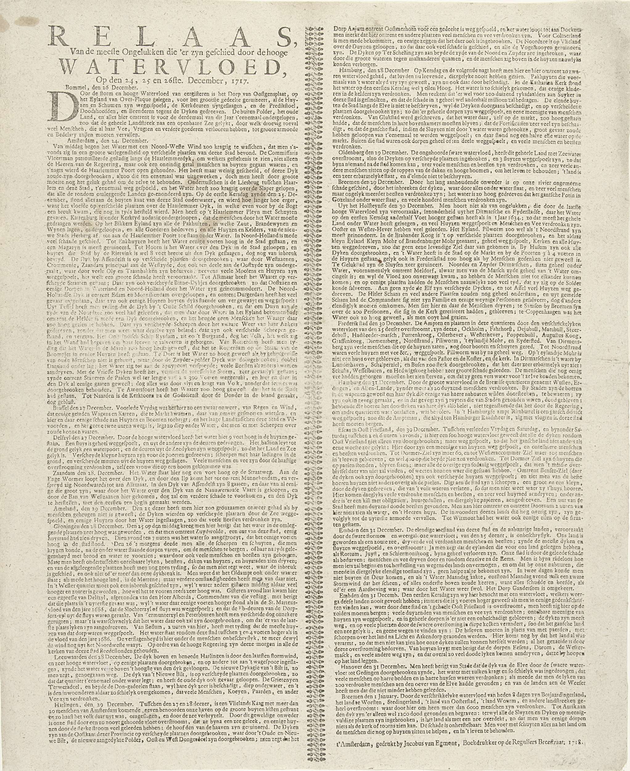 Relaas van de watersnood bij Amsterdam, 1717