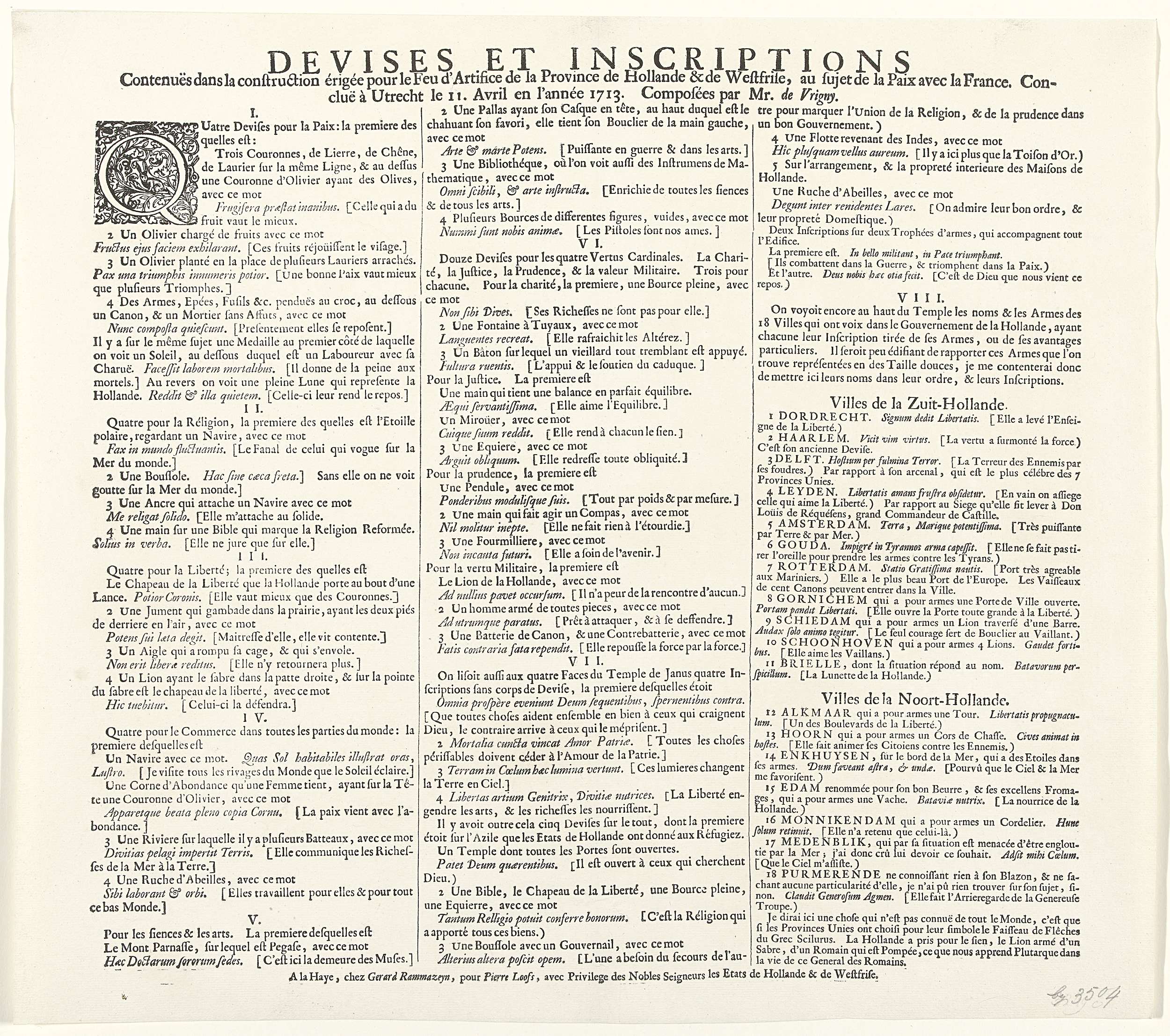 Tekstblad bij de prent van het vuurwerk bij de vieri...