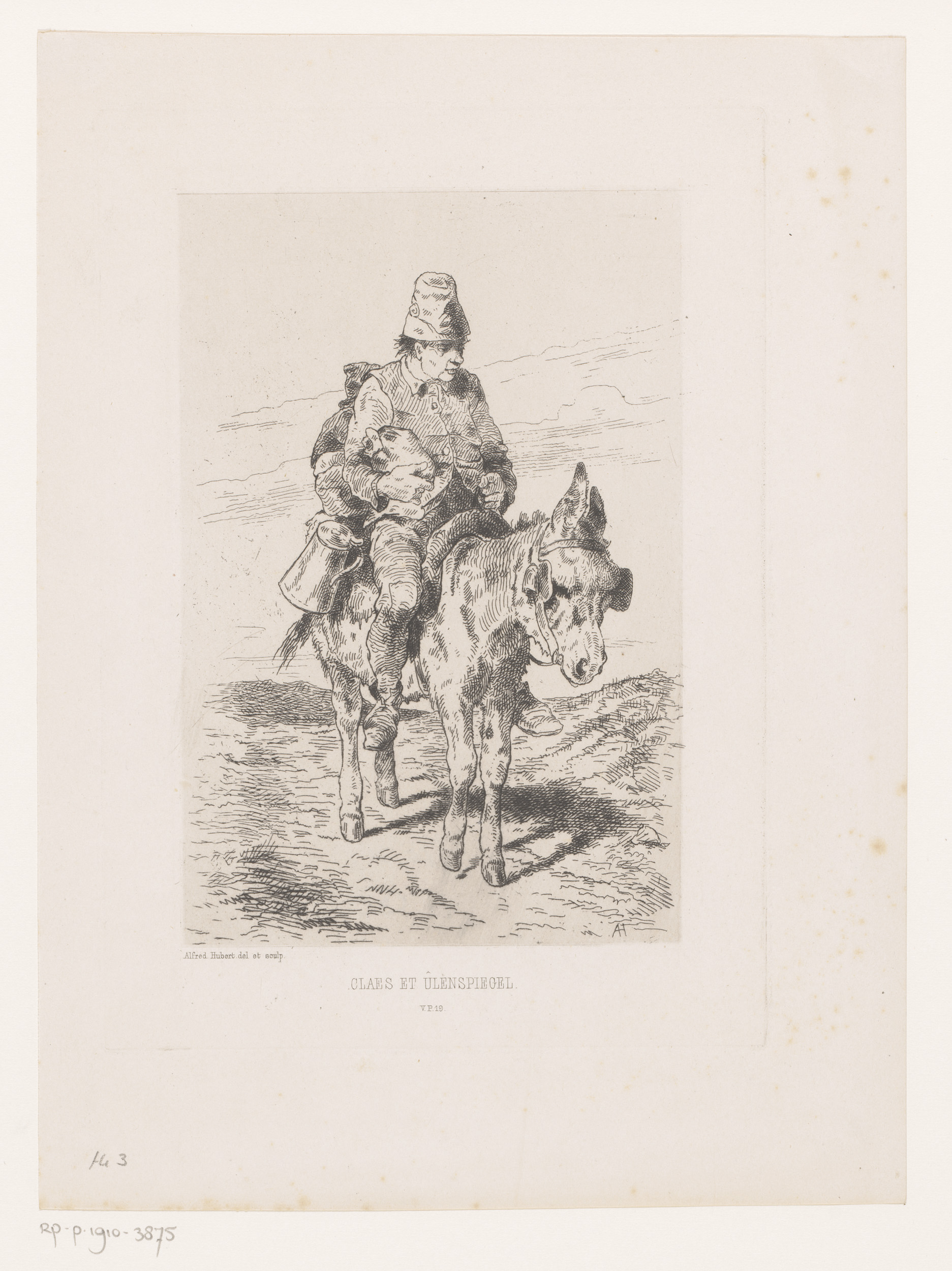 Tijl Uilenspiegel en zijn vader Klaas op een ezel