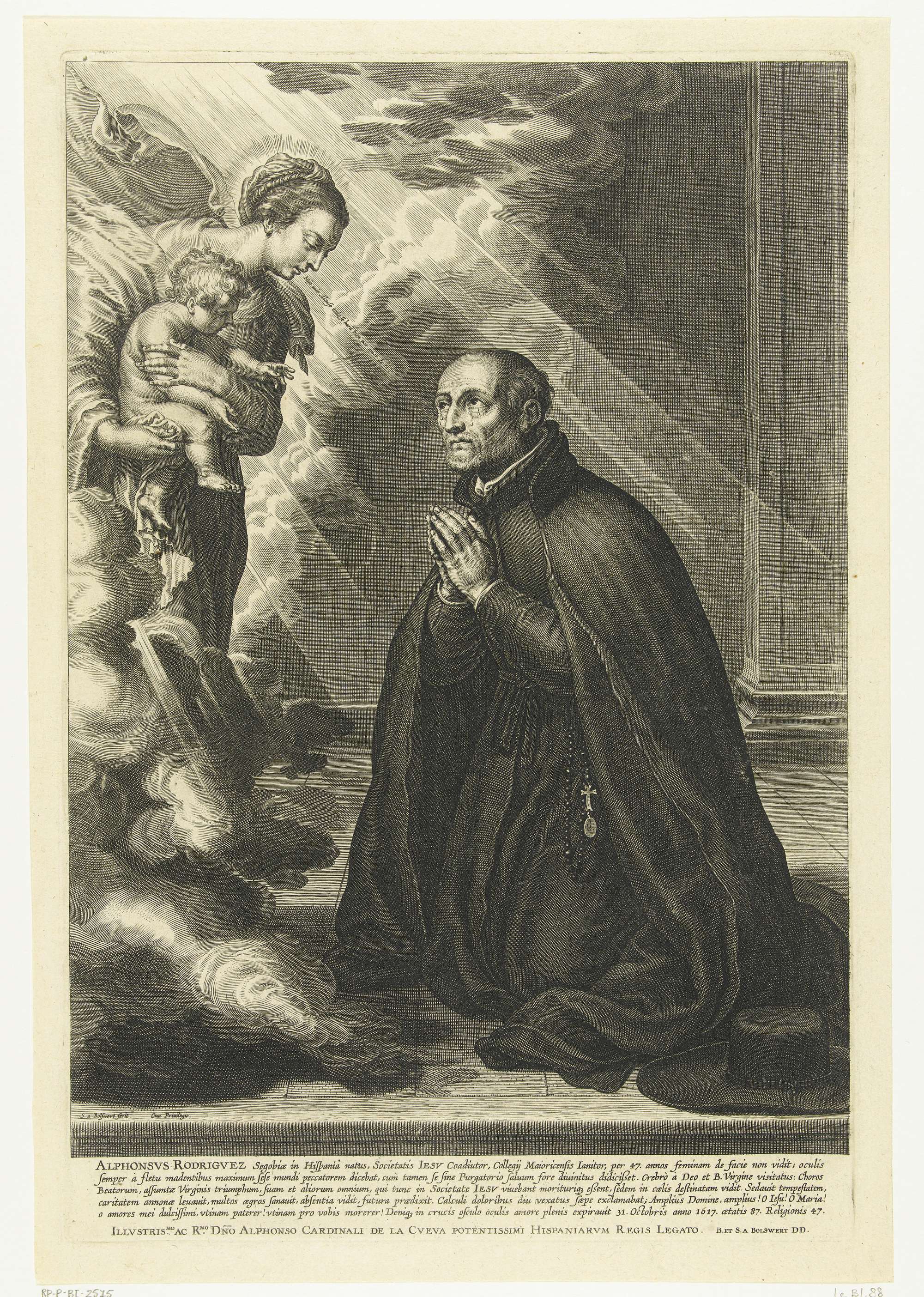 Maria met kind verschijnen aan heilige Alfons Rodriguez