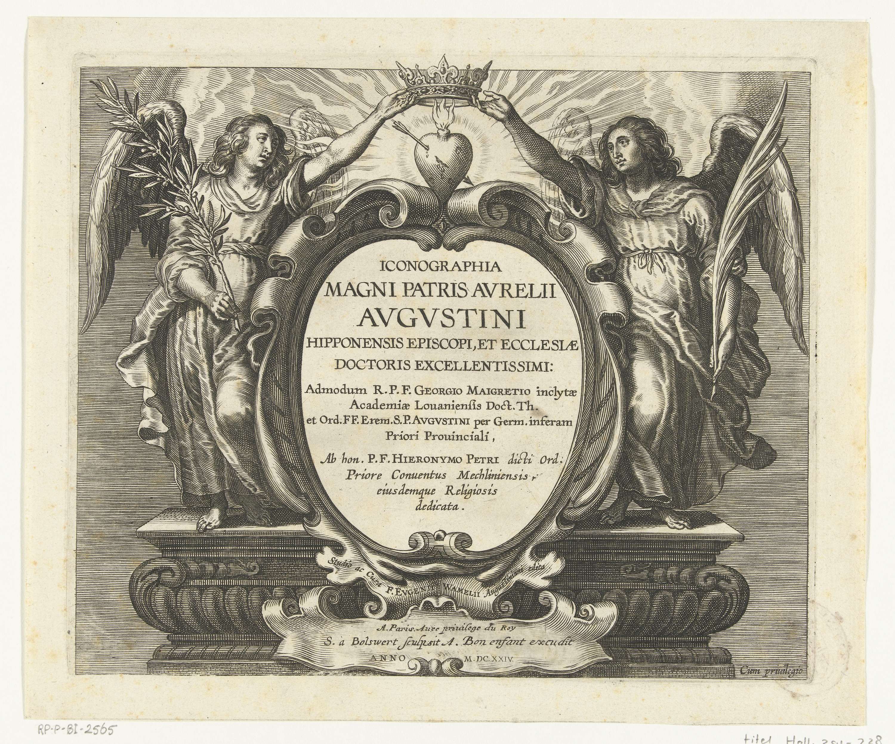 Cartouche met titel geflankeerd door twee engelen di...