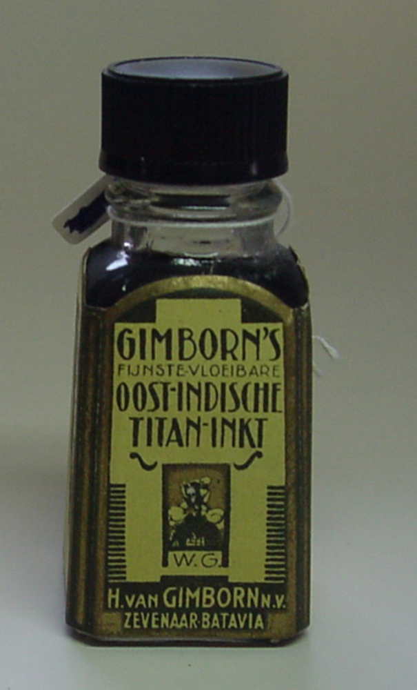 Flesje van glas gevuld met Titan Oost-Indische inkt ...