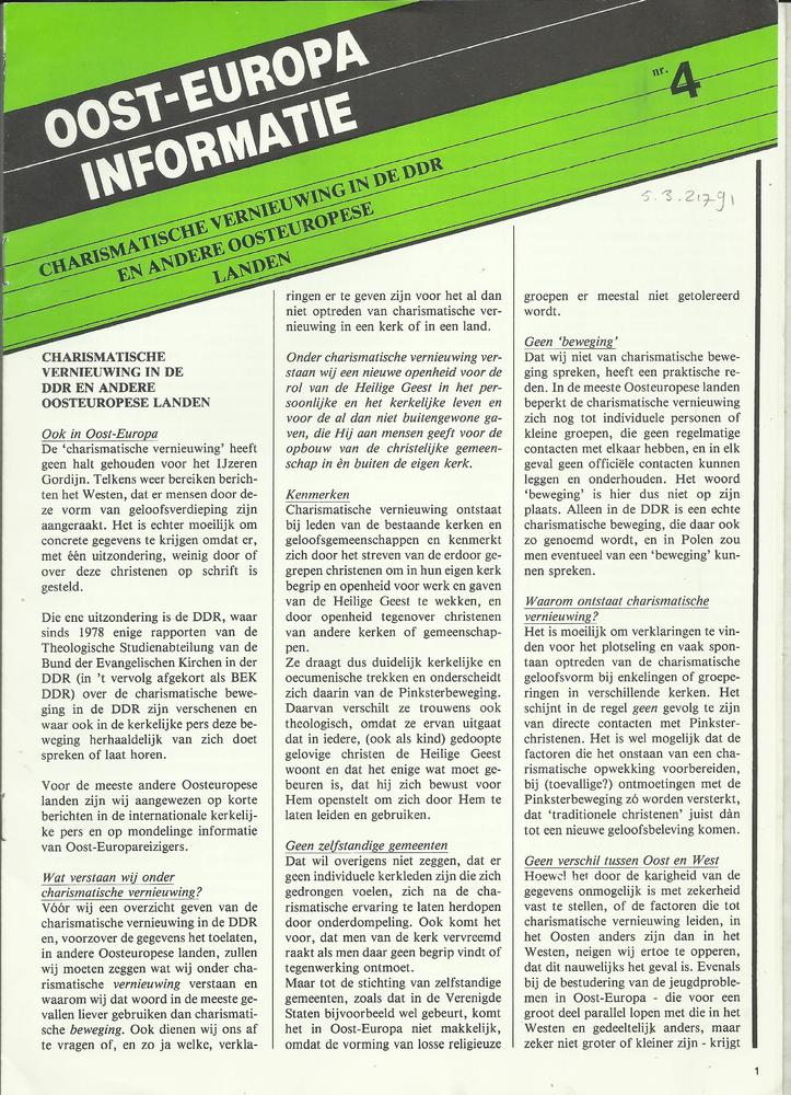 Oost-Europa Informatie. Hulpverlening aan kerken en ...