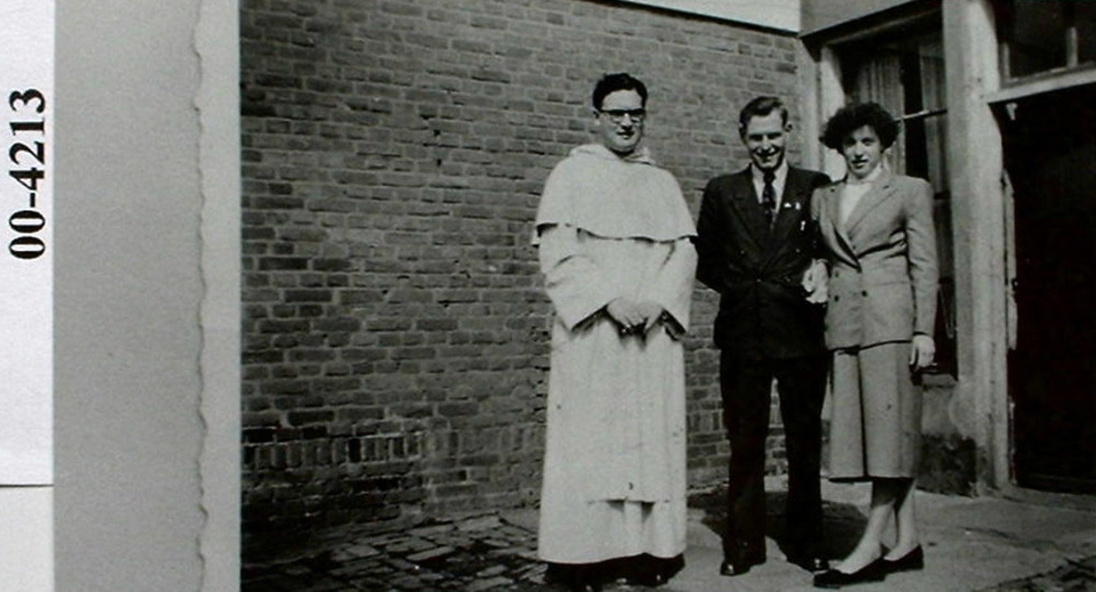 Links Pater Betaille, midden Rijk Voskuil geboren in...