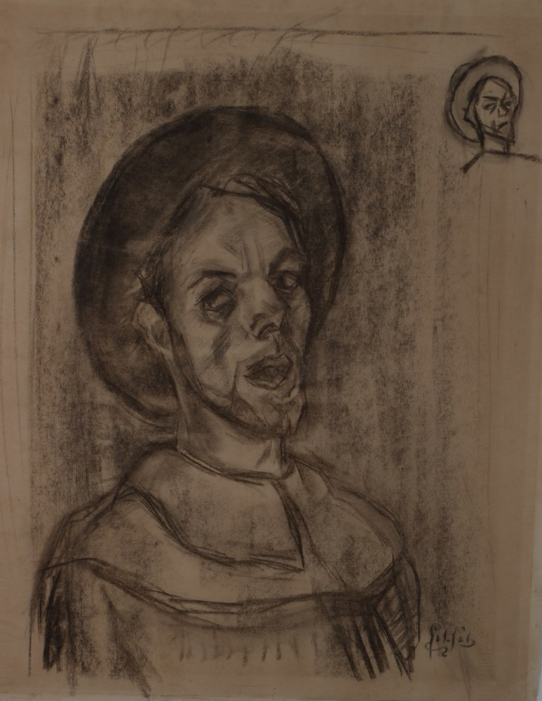 Houtskooltekening, voorstellende een Hierdense boeri...