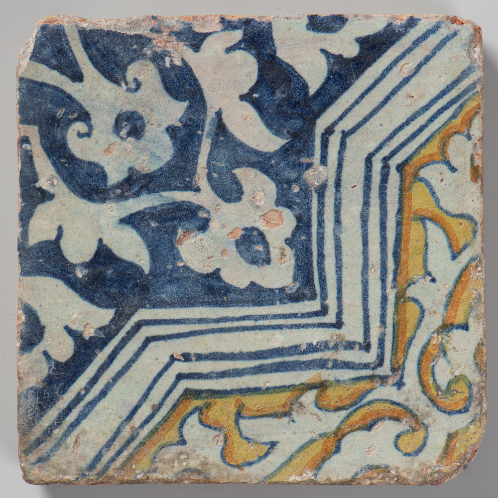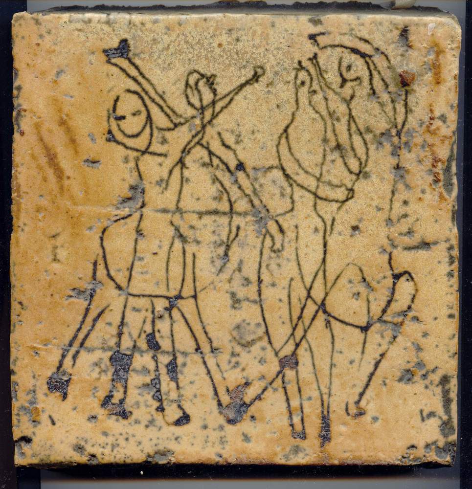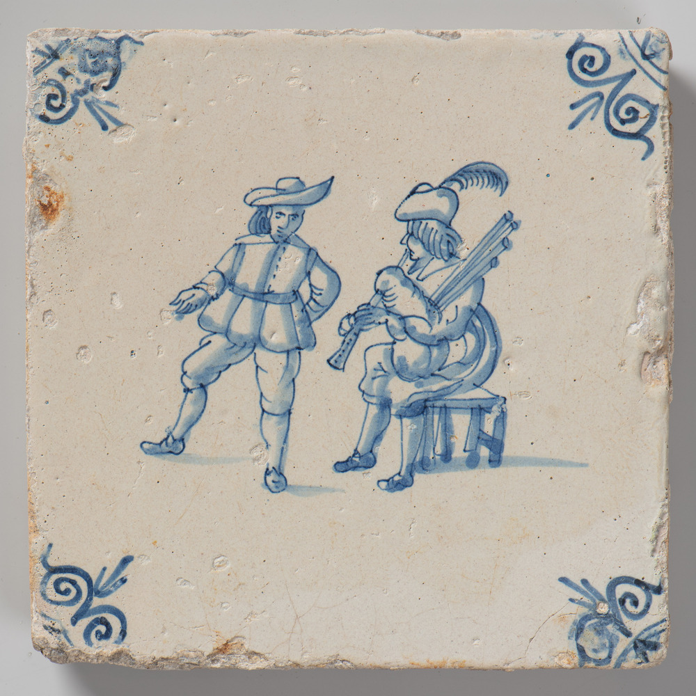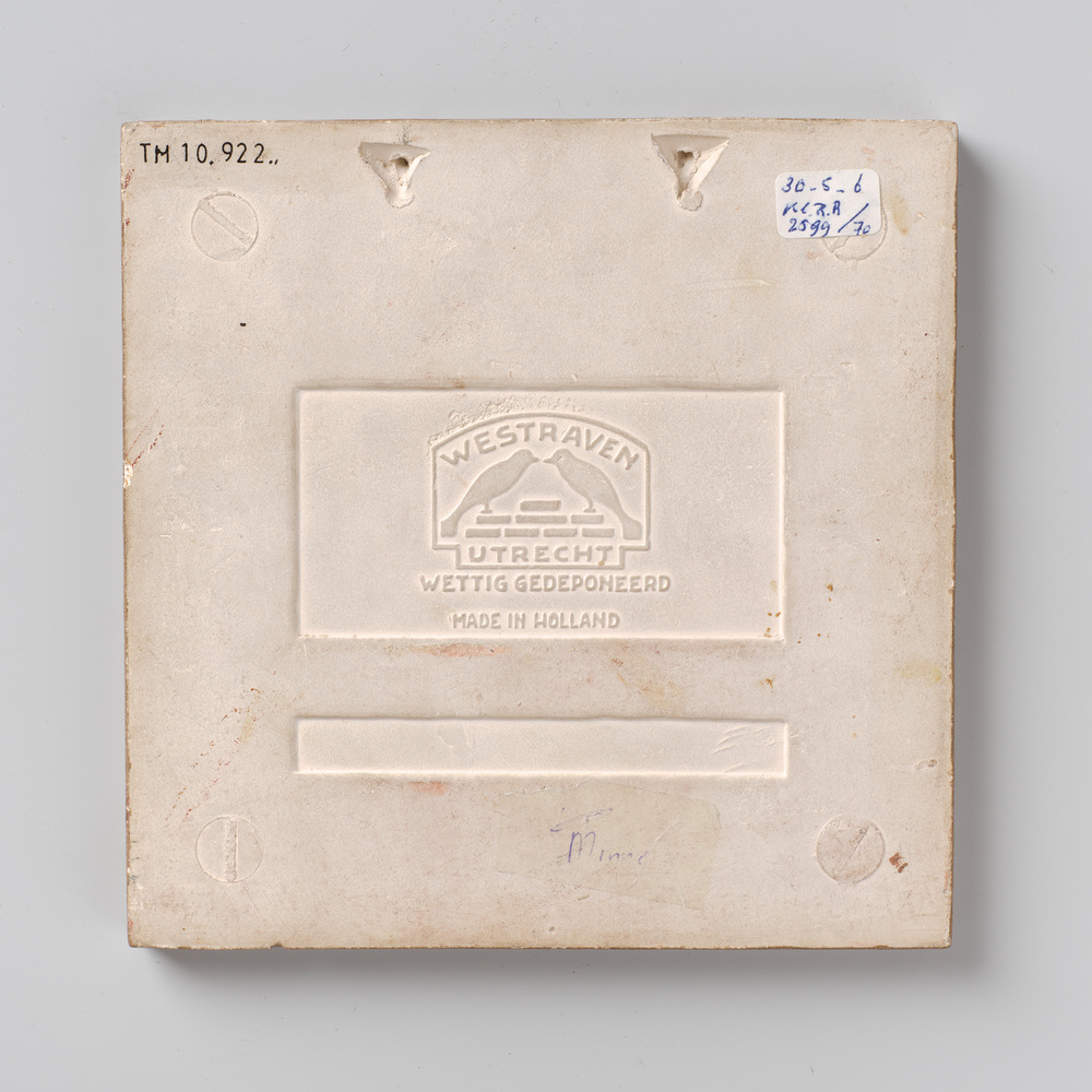 tegel van aardewerk met tinglazuur, voorstellende: t...