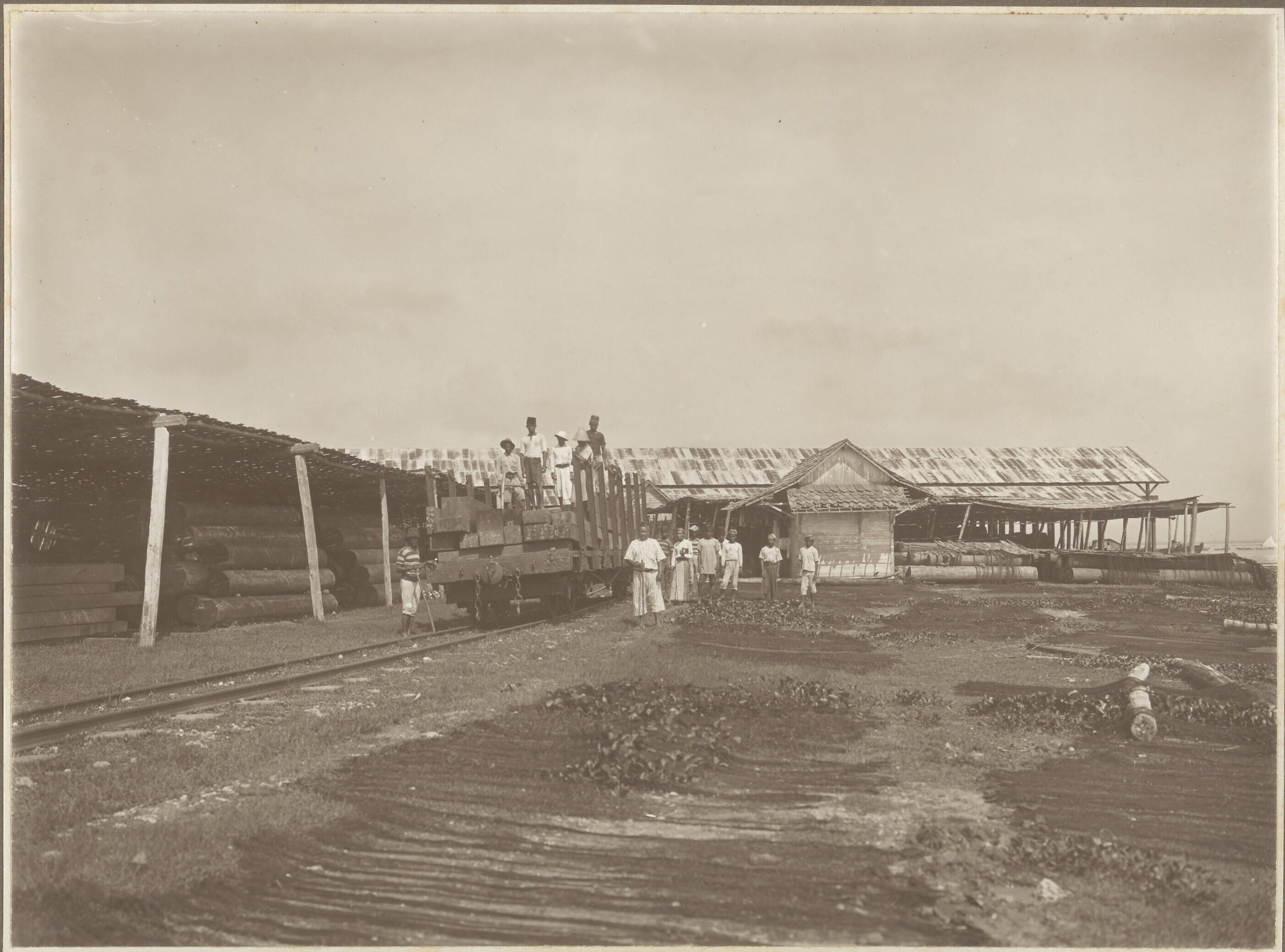 Stapelplaats voor houtexport van de Vereenigde Javas...