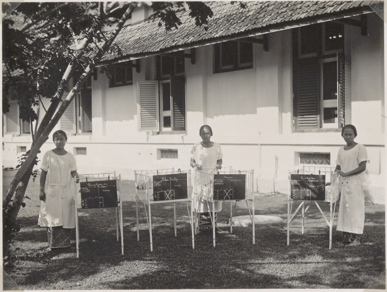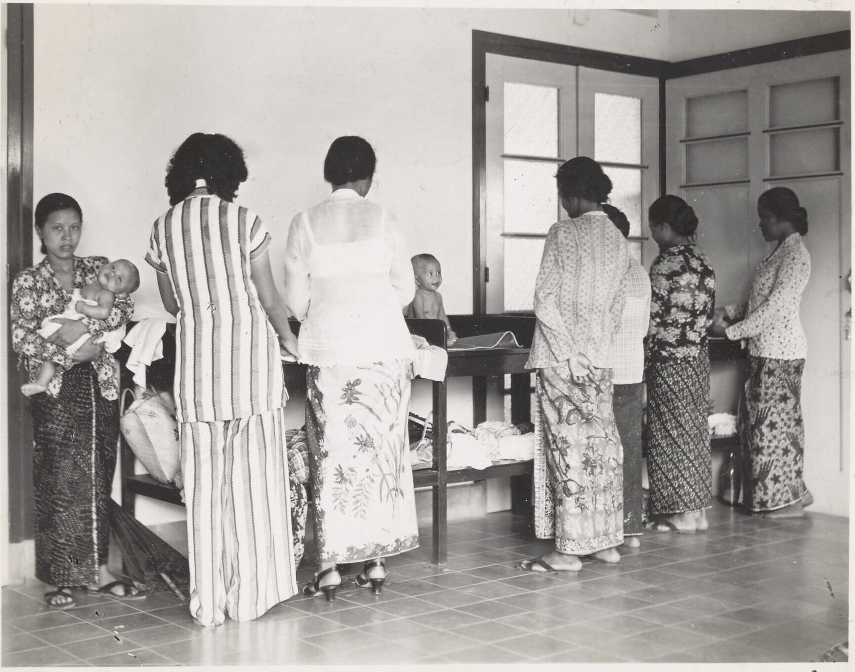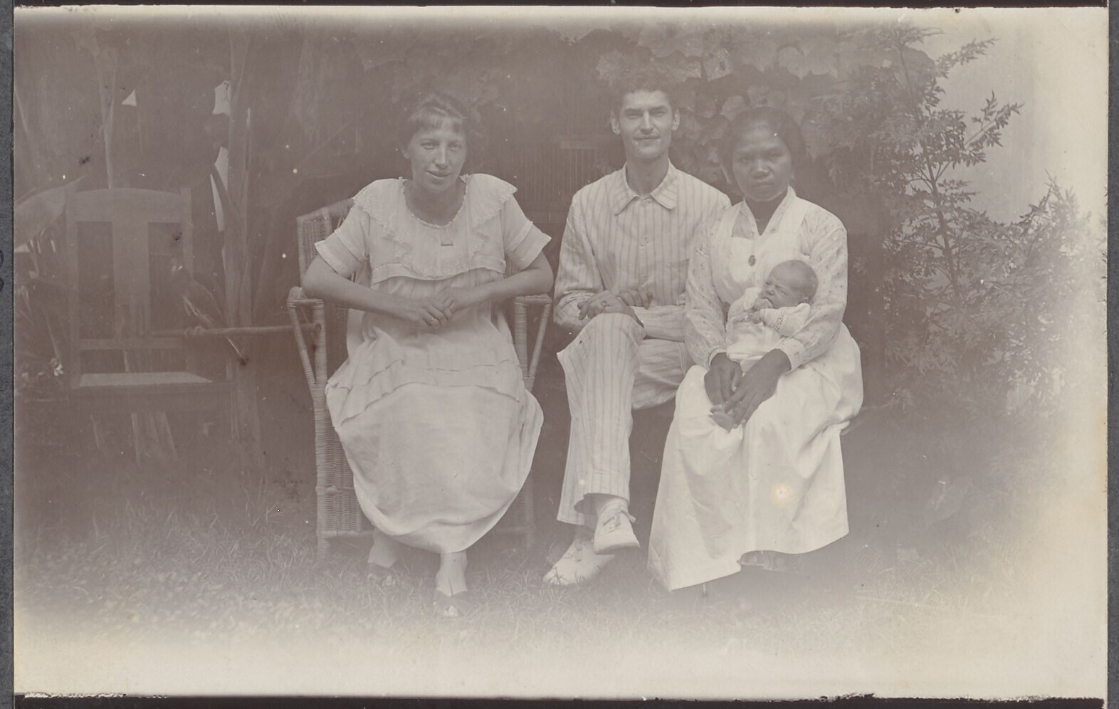 Baby, Pat van Deun, en kinderverzorgster voor het hu...