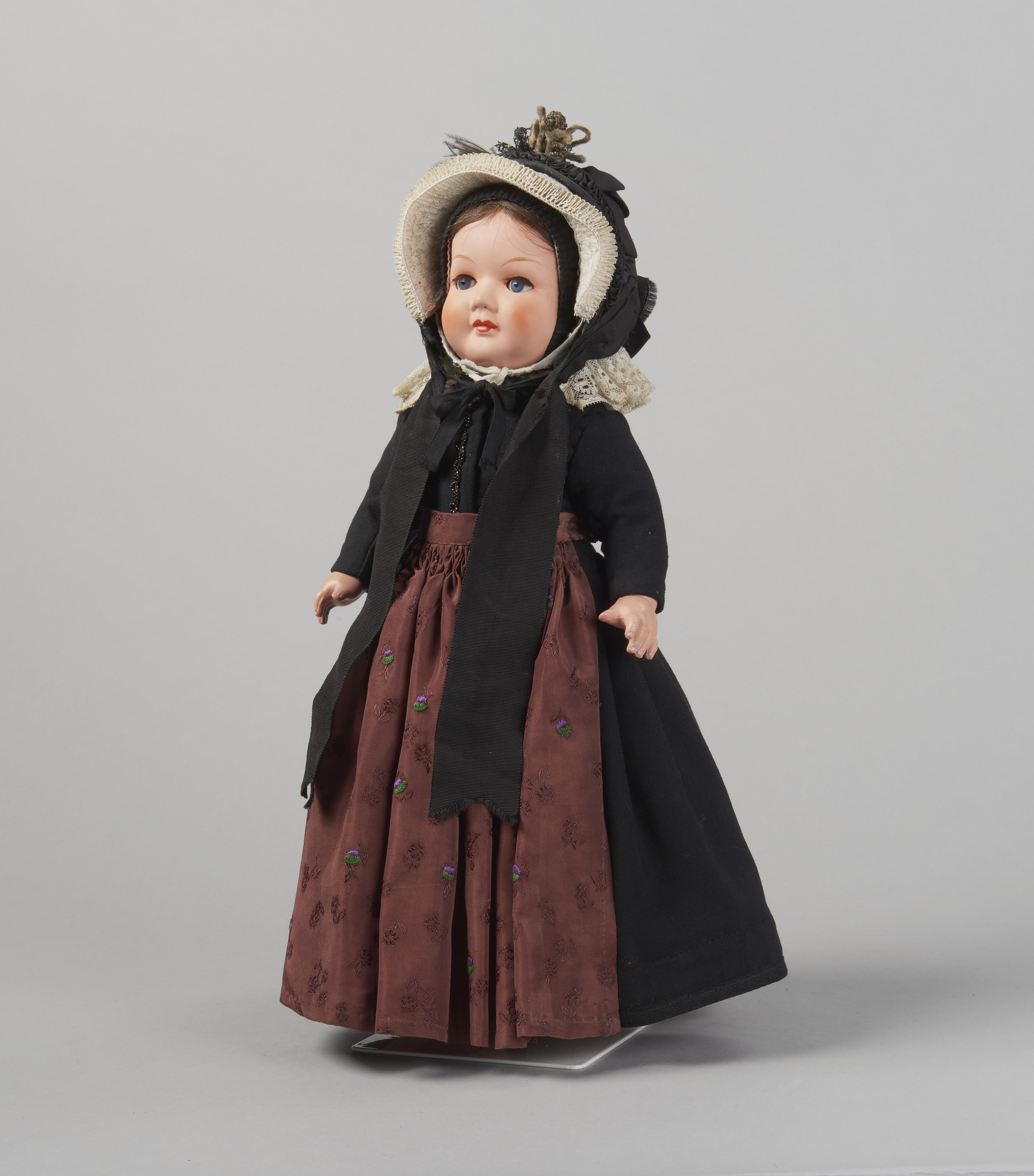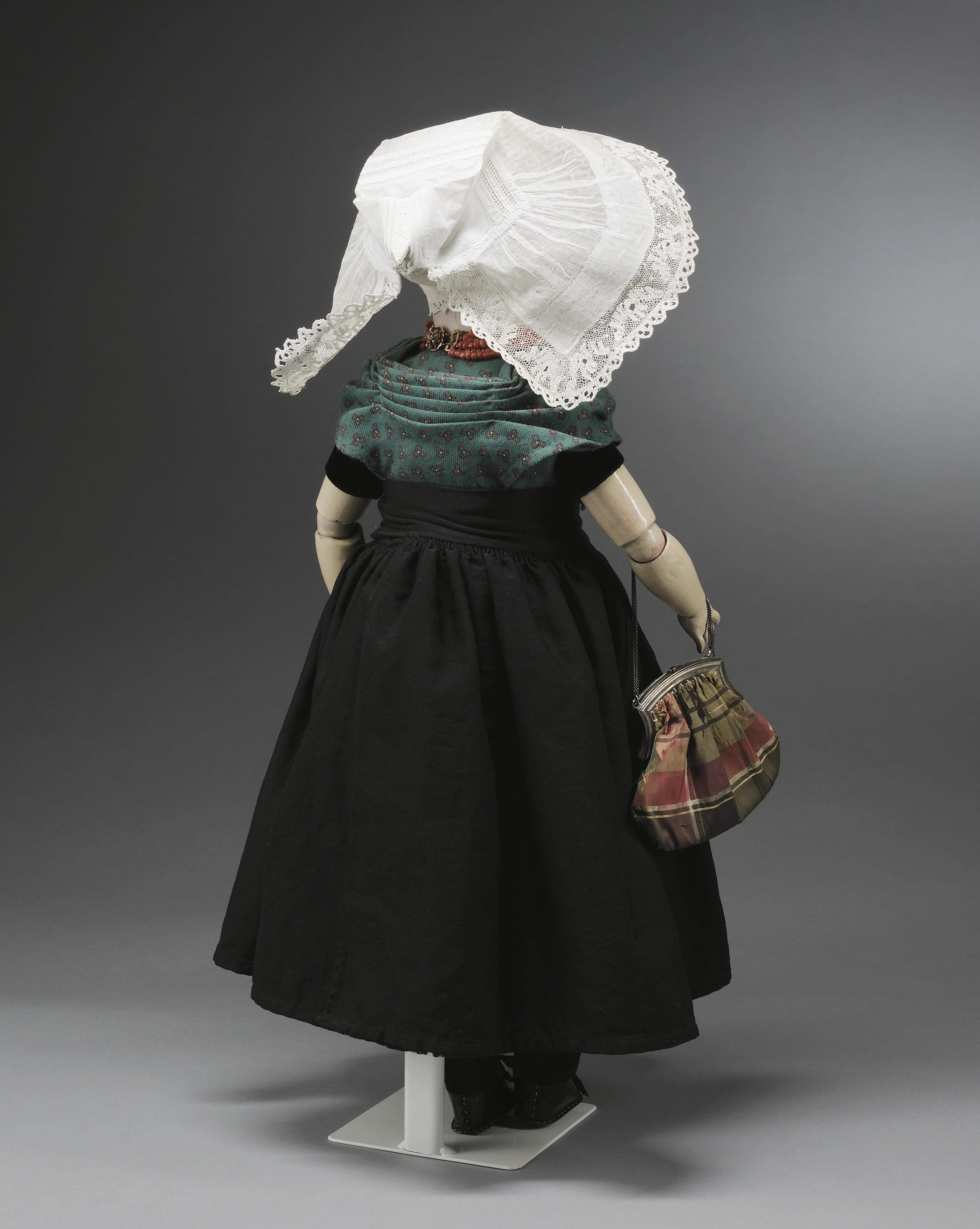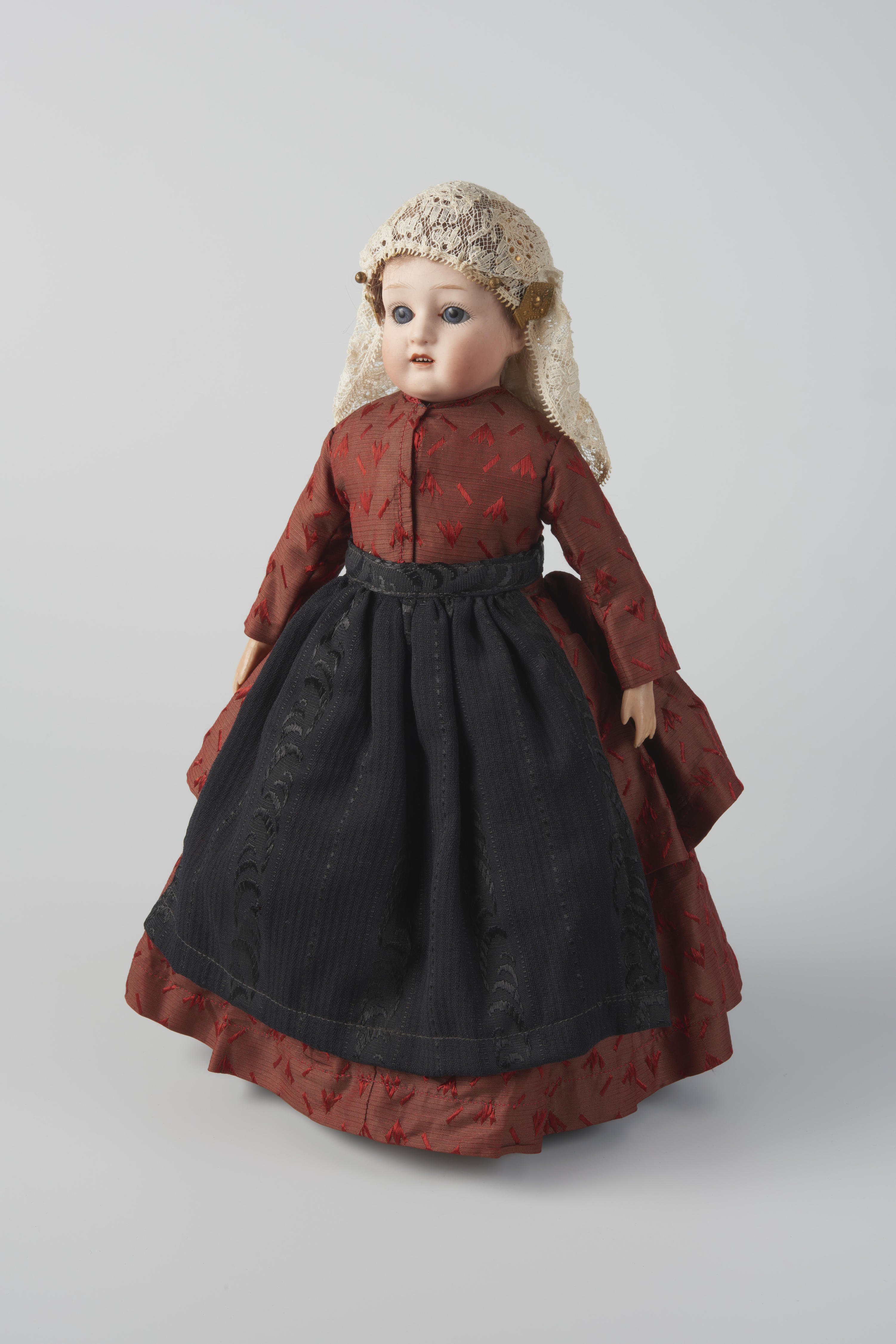 Pop gekleed als ongehuwde vrouw uit Hindeloopen, voo...