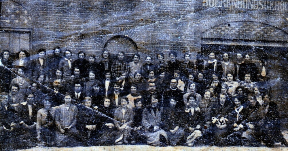 Jonge Overasseltse vrouwen voor het boerenbondsgebouw