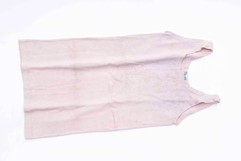 Poppenhemd van wit katoen, gebreid met ajourpatroon
