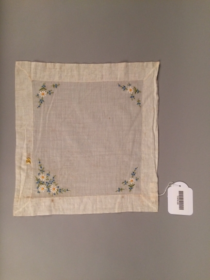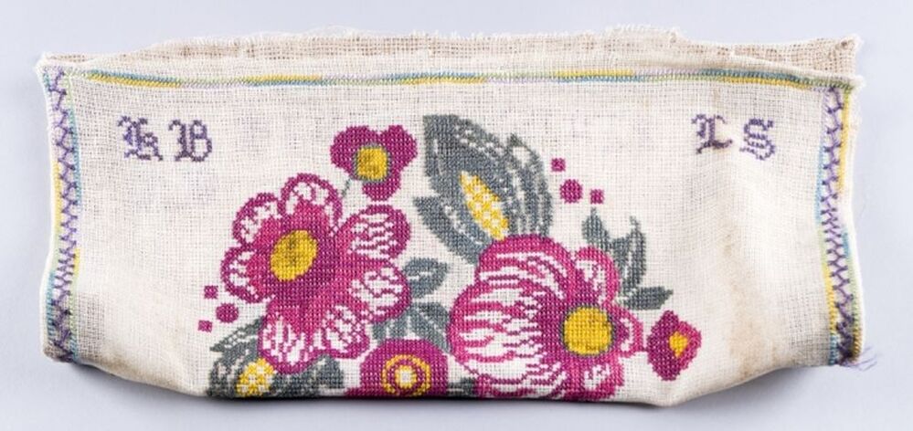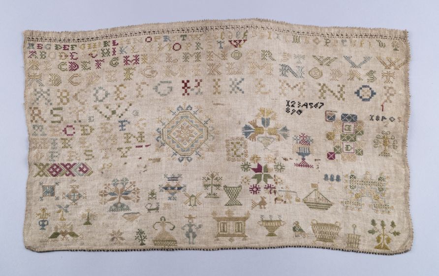 Merkletterlap geborduurd met linnen en zijde, jaarta...