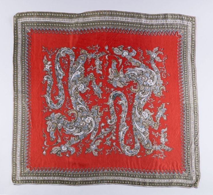 Sjaaltje van bedrukte zijde met in het midden een pa...