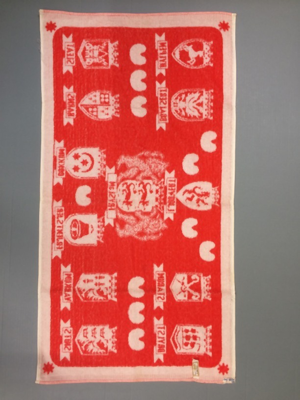 Sjaaltje van synthetische stof, met kaart en symbole...