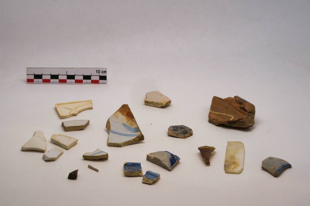 Fragmenten, blik/aardewerk/faience/steengoed/porsele...