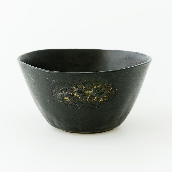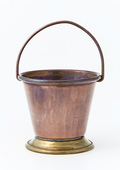 Ronde koperen kom, met hoge naar boven zich verbrede...